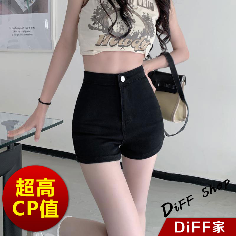 【DIFF】韓版高腰顯瘦黑色緊身牛仔短褲 休閒褲 短褲 褲子 女裝 休閒短褲 高腰褲 牛仔褲【P245】【P245】黑色S號 |【P245】黑色M號|【P245】黑色L號|【P245】黑色XL號ShortsDiFF shop