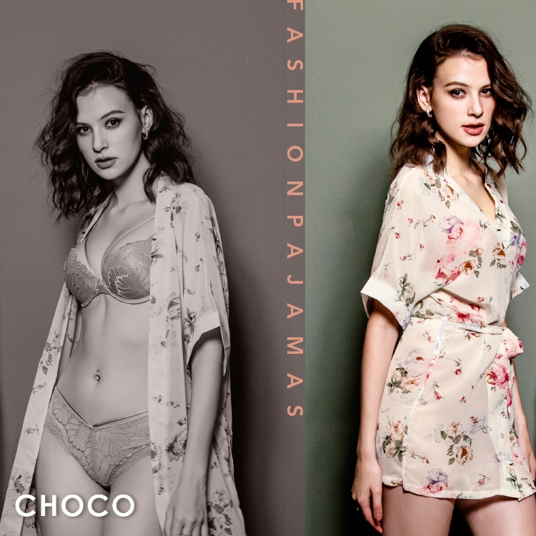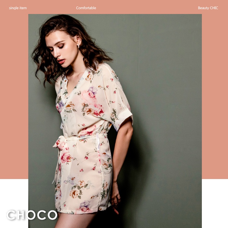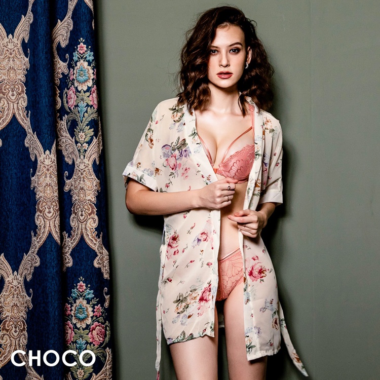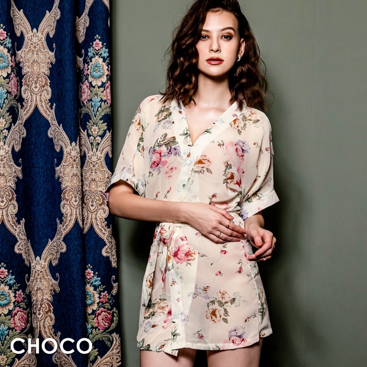 Choco Shop浪漫花塢 春漾印花開襟雪紡紗睡袍(白色) Free Size白FKimonos & RobesCHOCO SHOP