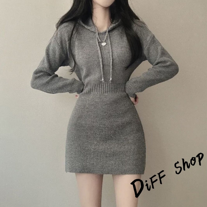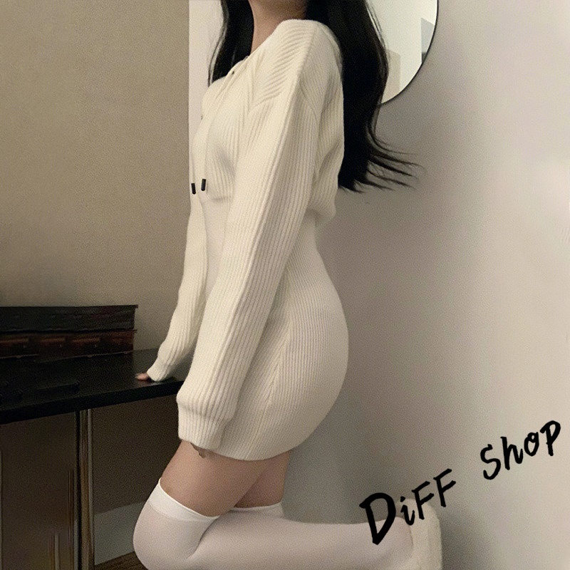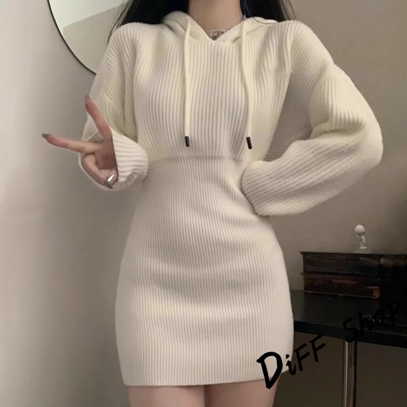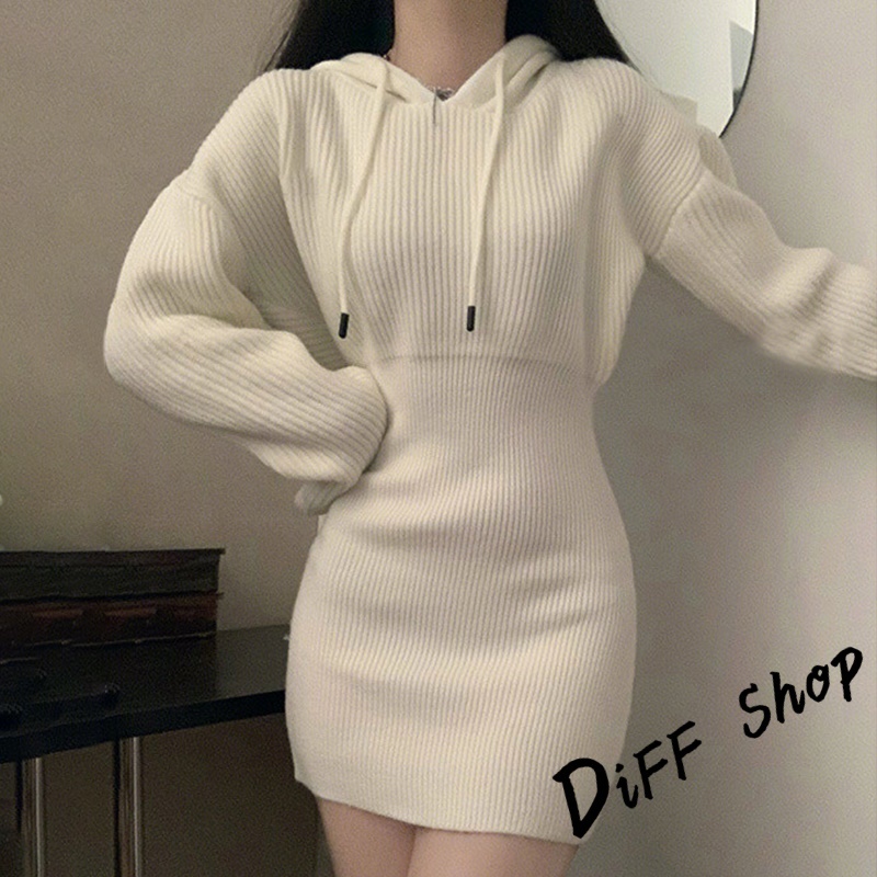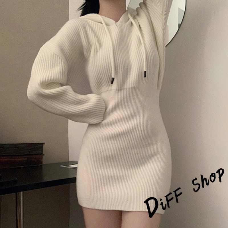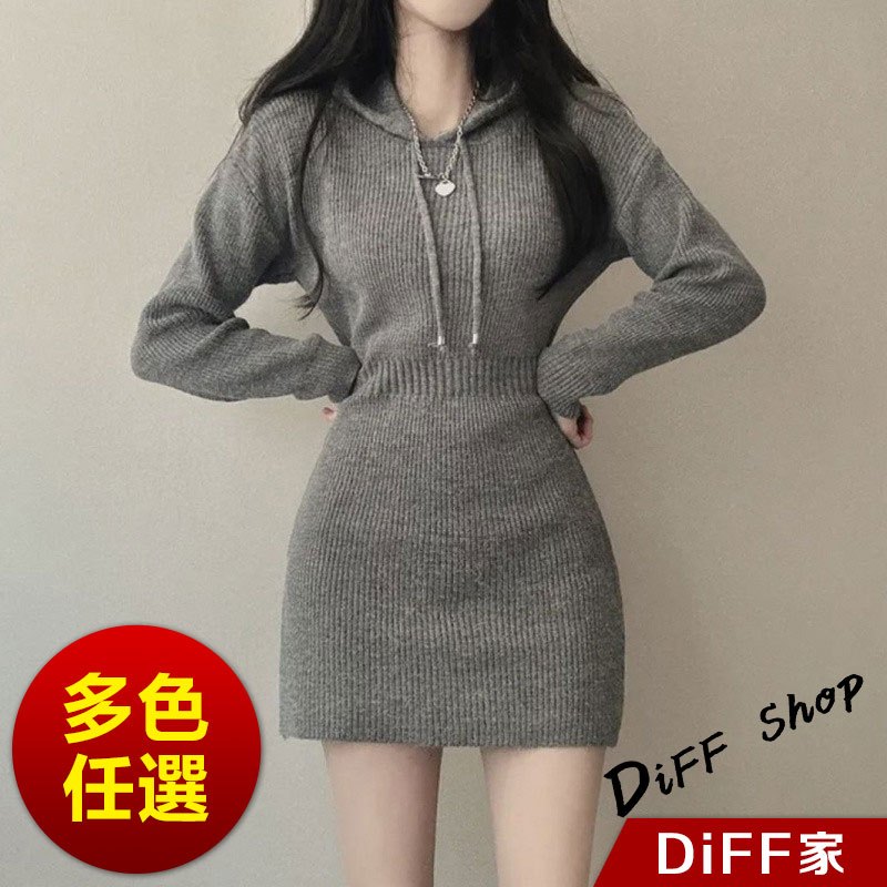 【DIFF】韓版收腰顯瘦連帽針織洋裝 針織上衣 毛衣 長袖上衣 女裝 衣服 長袖t恤 保暖上衣 冬季女裝【S232】【S232】米白|【S232】黑色|【S232】灰色DiFF shop