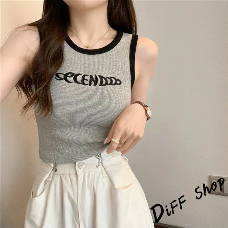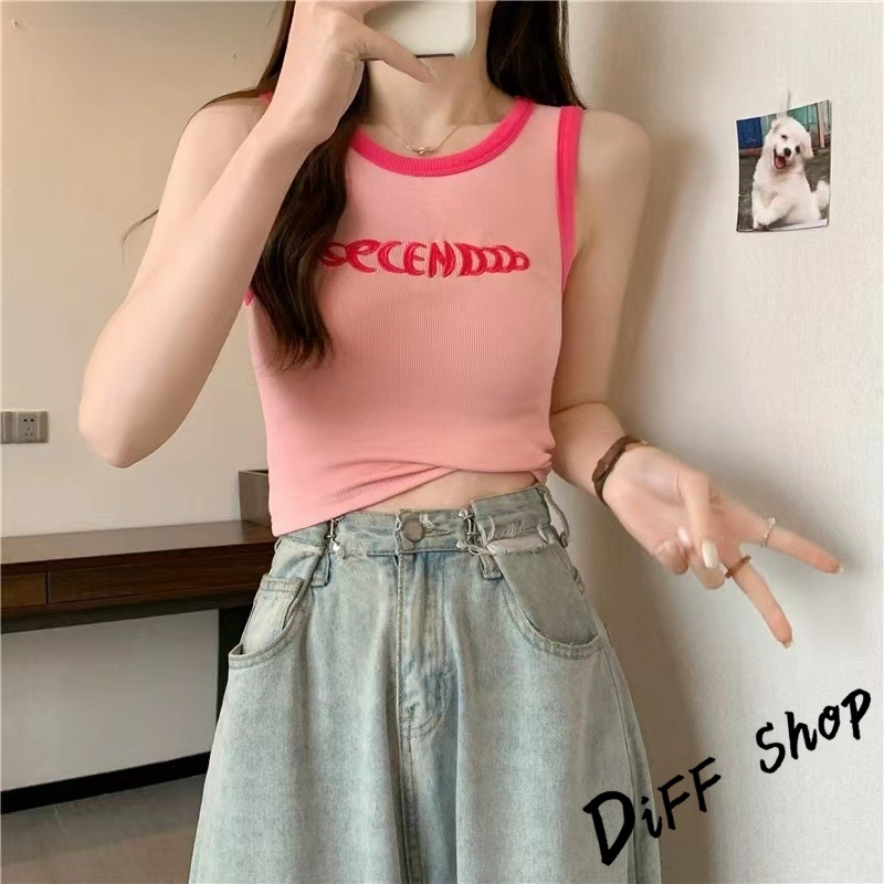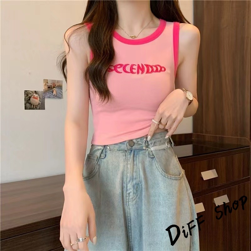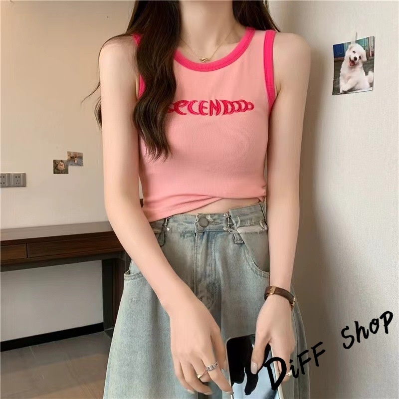 【DIFF】韓版短版字母顯瘦無袖背心 小可愛 女裝 衣服 短版上衣 小背心 夏天女裝 運動背心 內搭 吊帶【V396】【V396】灰色|【V396】白色|【V396】粉色Tanks & CamisolesDiFF shop
