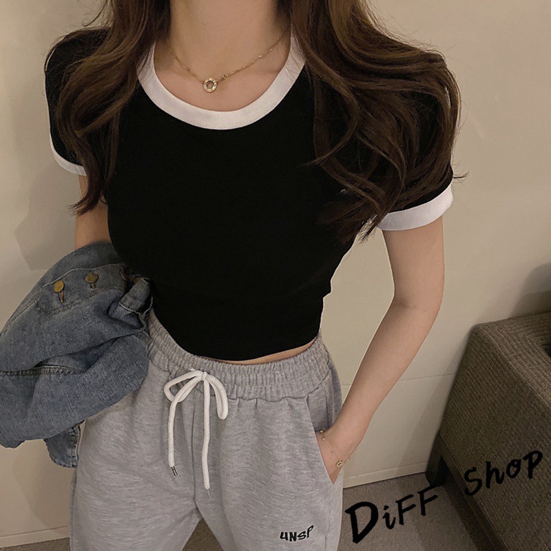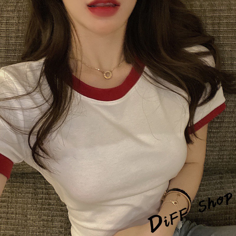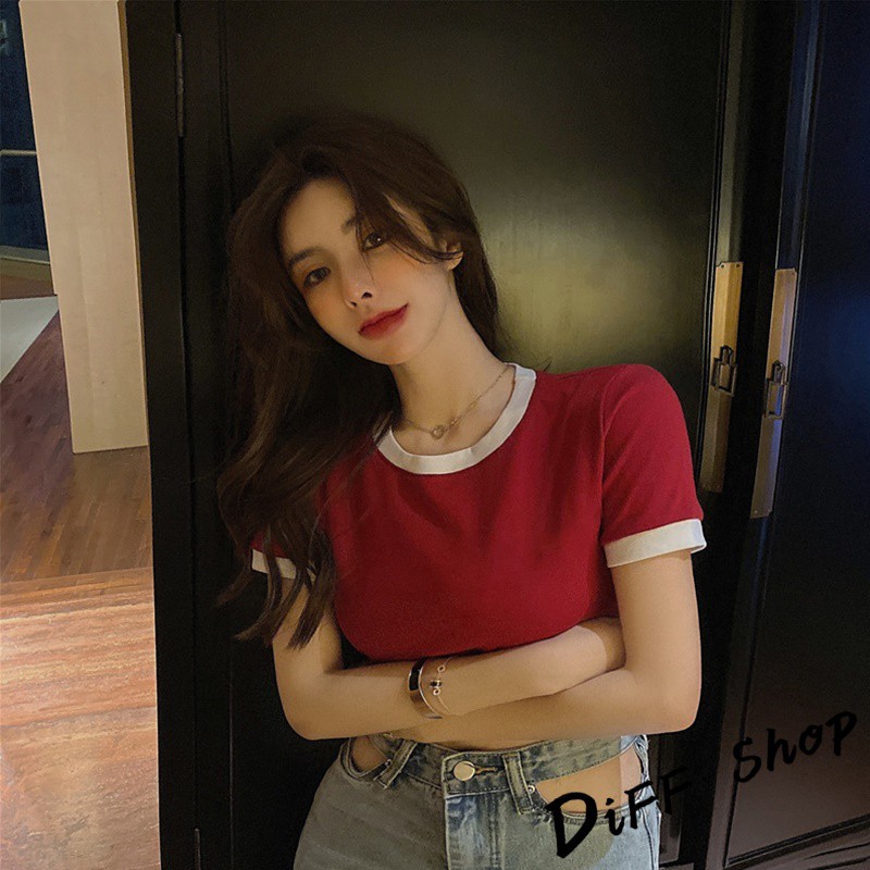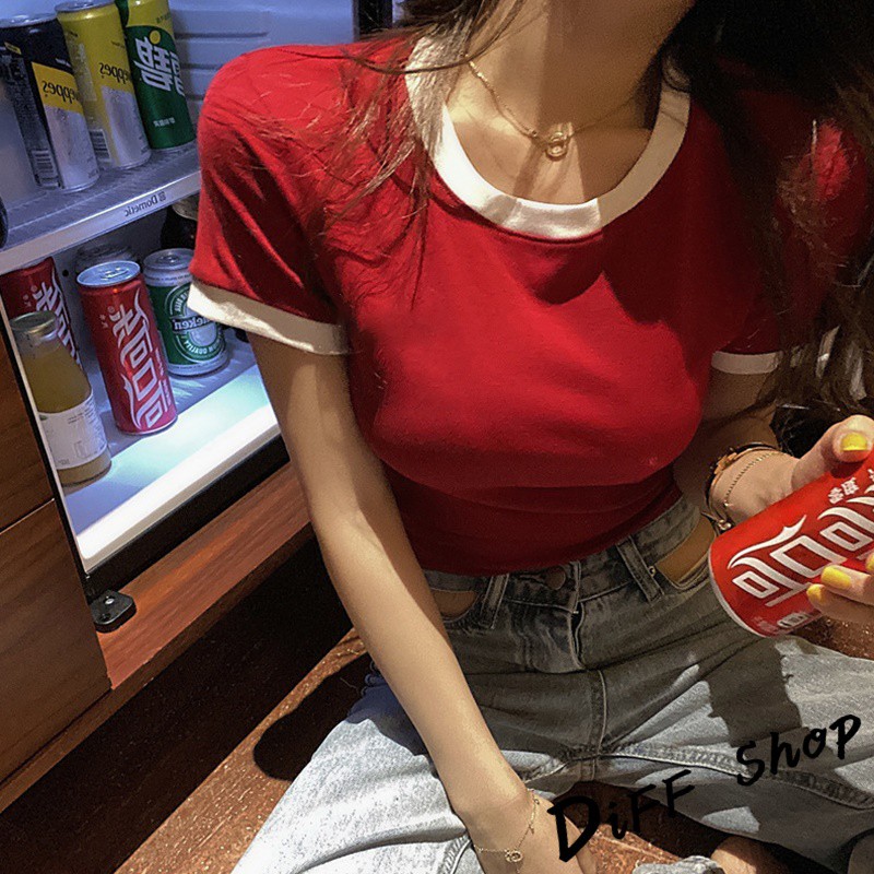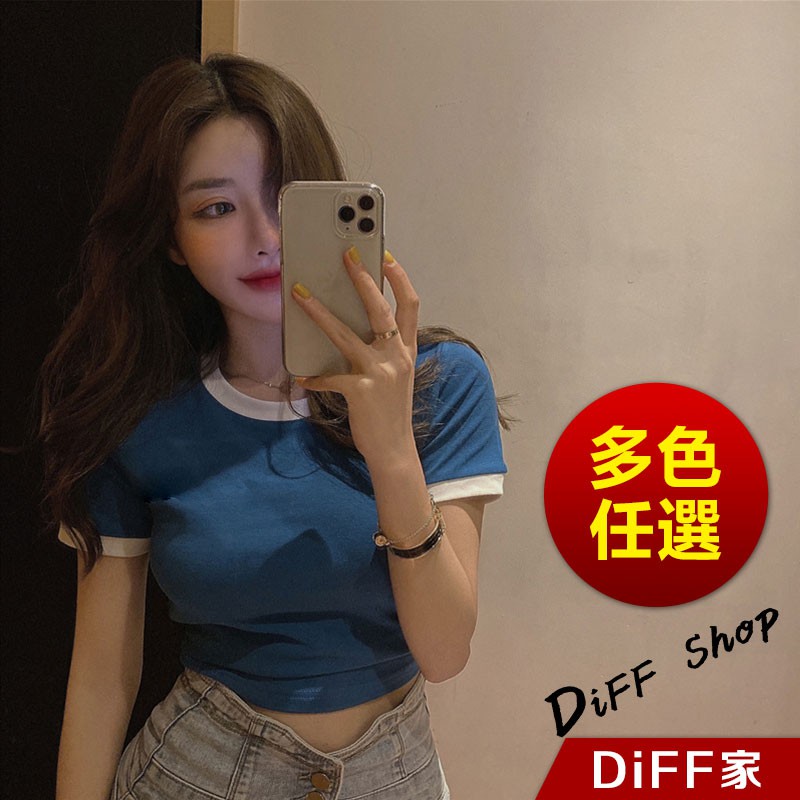 【DIFF】韓版撞色短版修身顯瘦短袖上衣 短袖t恤 女裝 顯瘦上衣 衣服 寬鬆上衣 素T【T306】【T306】黑色|【T306】紅色|【T306】白色|【T306】藍色T-shirtsDiFF shop