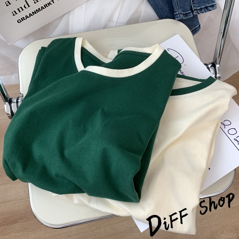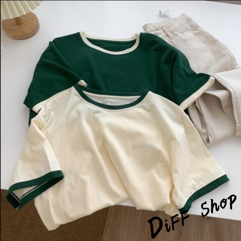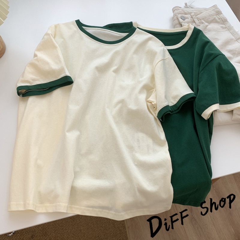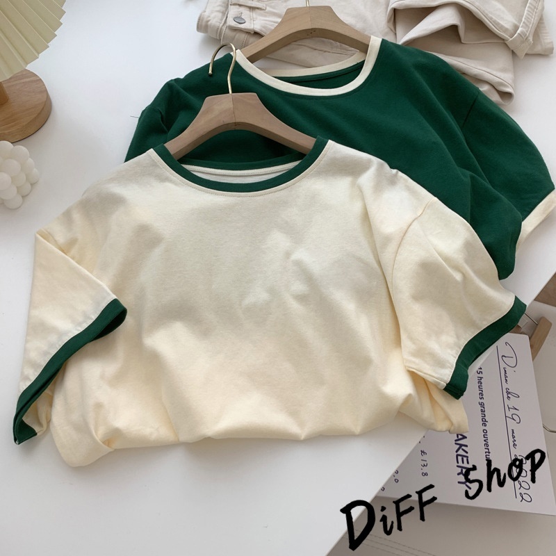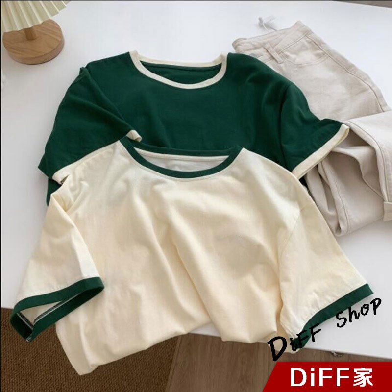 【DIFF】韓版撞色圓領寬鬆短袖上衣 顯瘦上衣 衣服 夏天女裝 短板上衣 短版t恤【T604】【T604】綠色|【T604】杏色T-shirtsDiFF shop