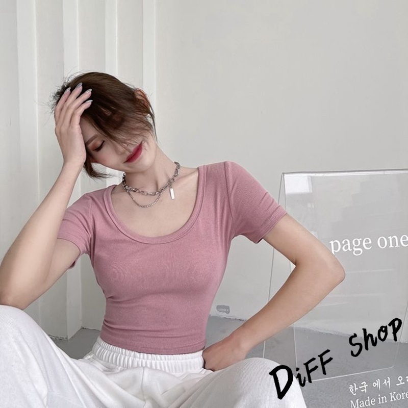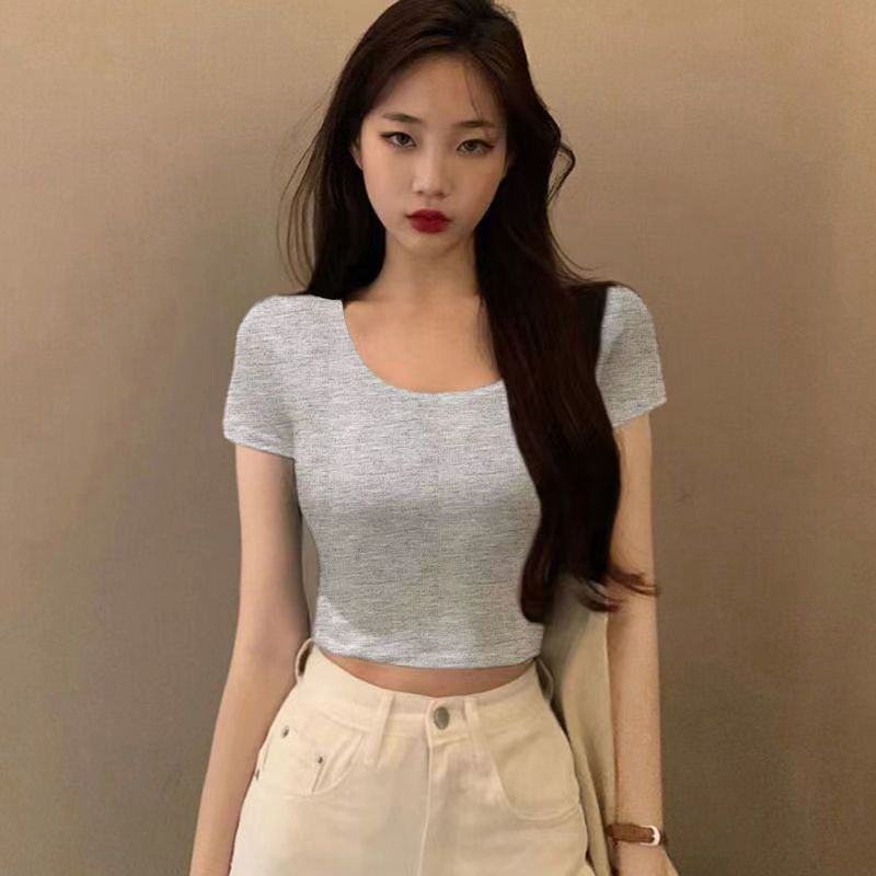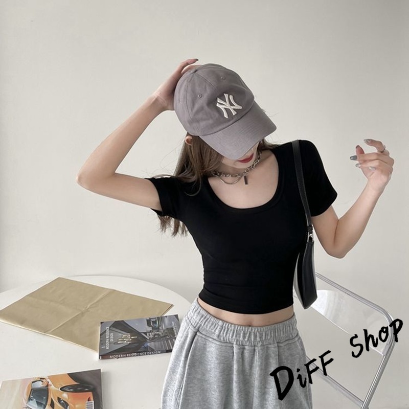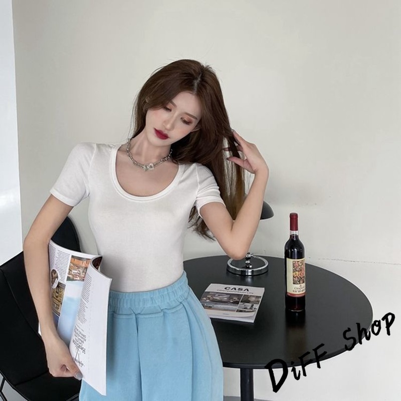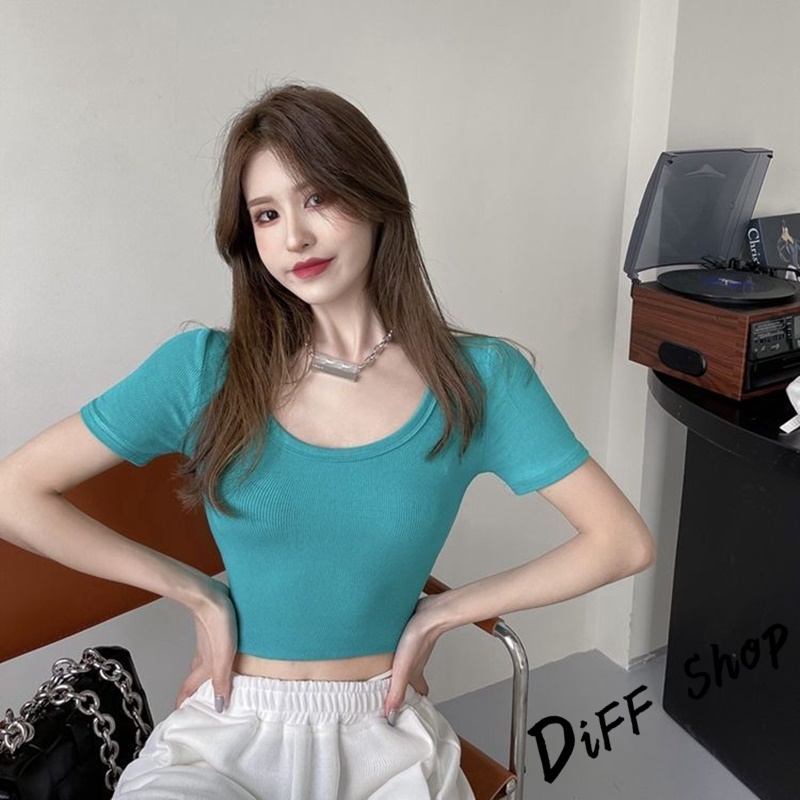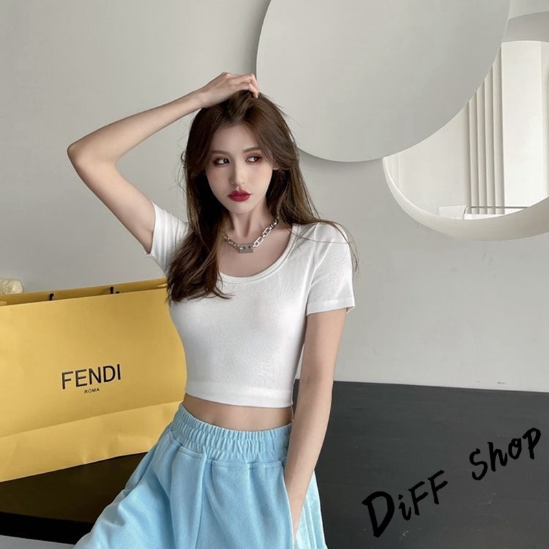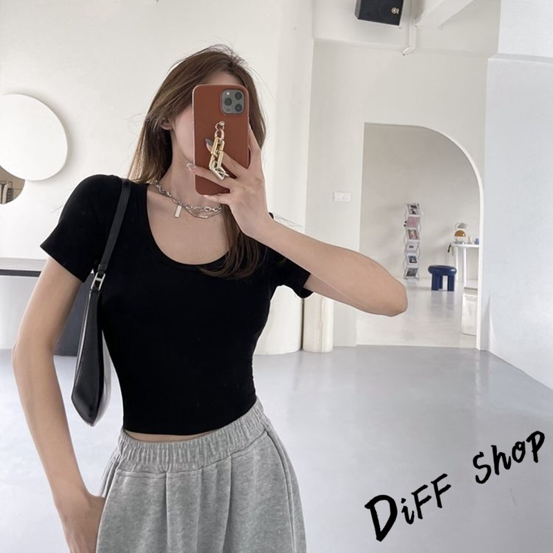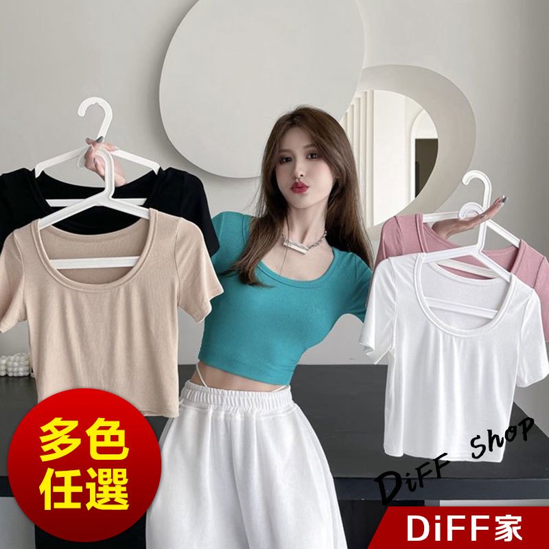 【DIFF】韓版U領白色彈性緊身短版上衣 短袖上衣 顯瘦上衣 衣服 夏天女裝 短板上衣 短版t恤 女裝【T629】【T629】藍綠色|【T629】黑色|【T629】白色|【T629】杏色|【T629】粉色|【T629】灰色T-shirtsDiFF shop