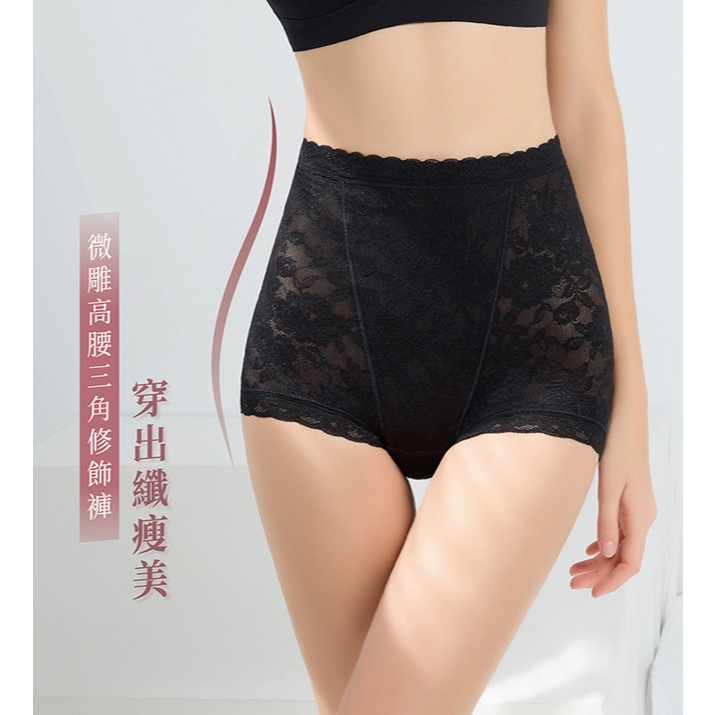 【EASY SHOP】Audrey-魔塑調整型-日本緹花蕾絲舒柔微雕高腰三角修飾褲-時尚黑3L|M|L|LLShapewearEASY SHOP官方直營