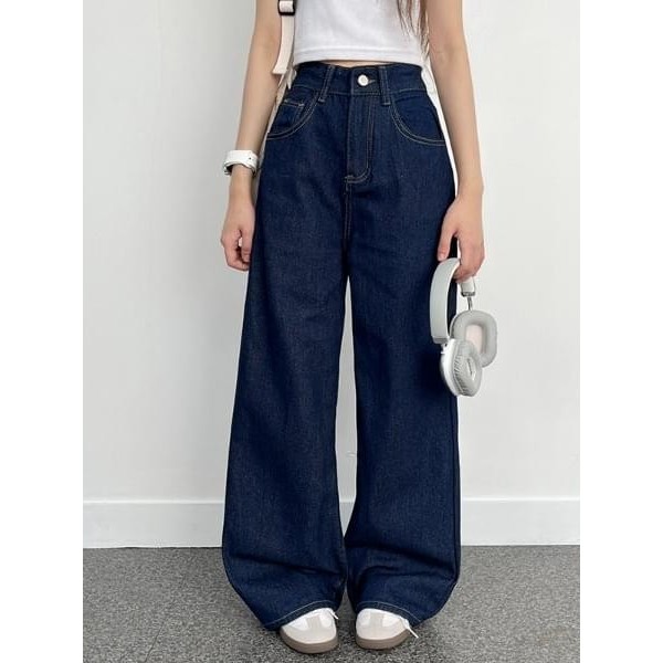 Codibook|韓國 BULLANG GIRL 高腰原色寬褲牛仔褲[預購]牛仔褲 女裝深藍色,S|深藍色,M|深藍色,LCodibook 韓國女裝購物平台