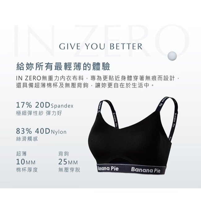 【EASY SHOP】Banana Pie-IN ZERO無重力無鋼圈內衣-煙燻鐵黑S|M|LBrasEASY SHOP官方直營