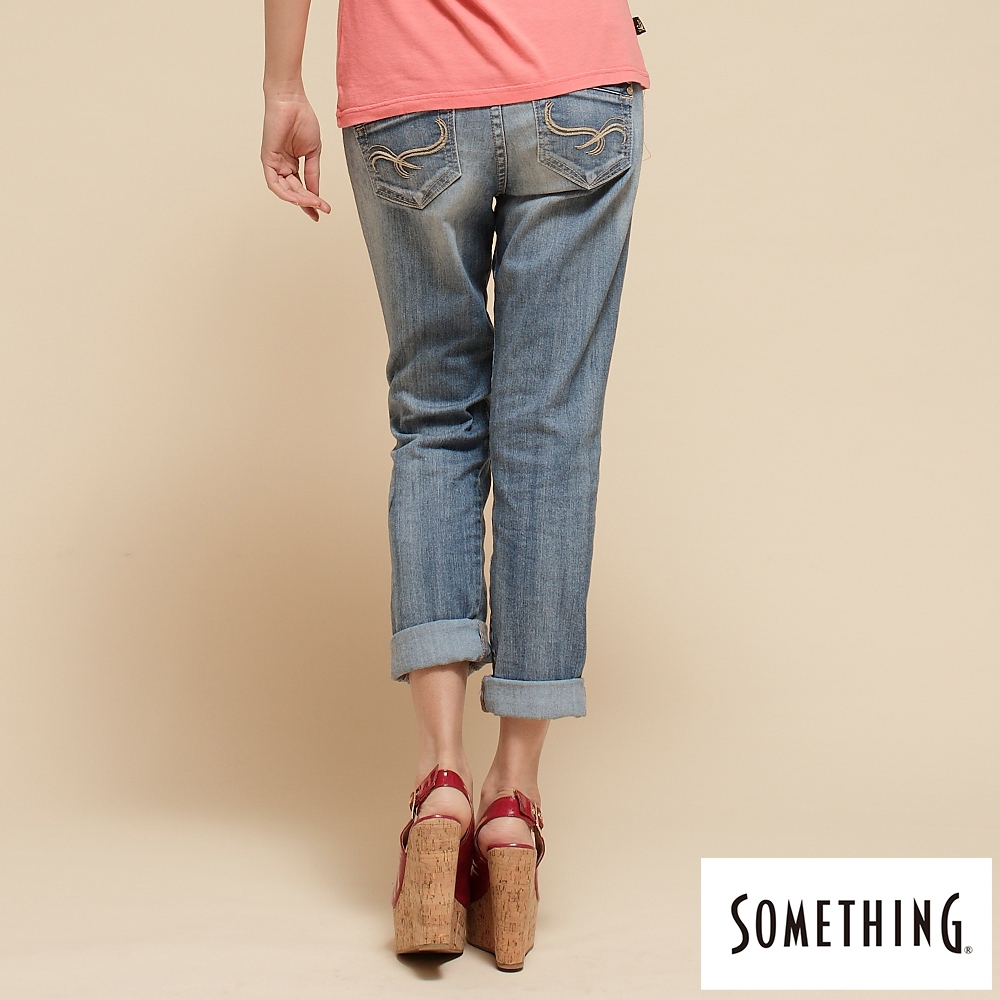 SOMETHING 女款 NATURAL涼感小垮褲(原藍磨)