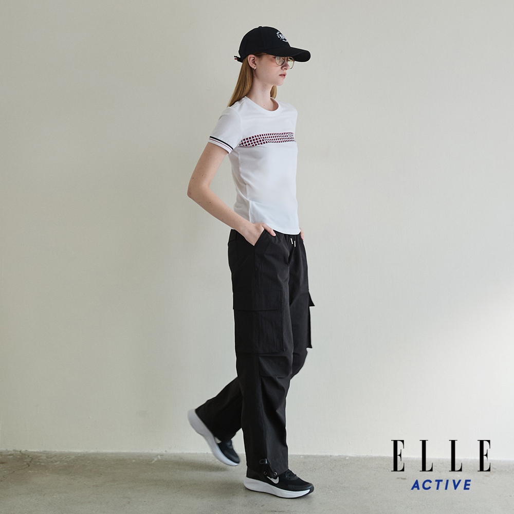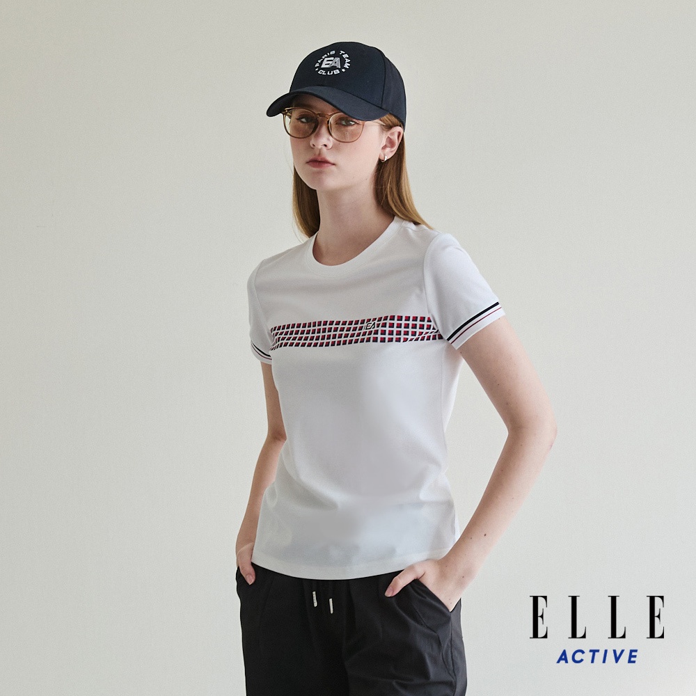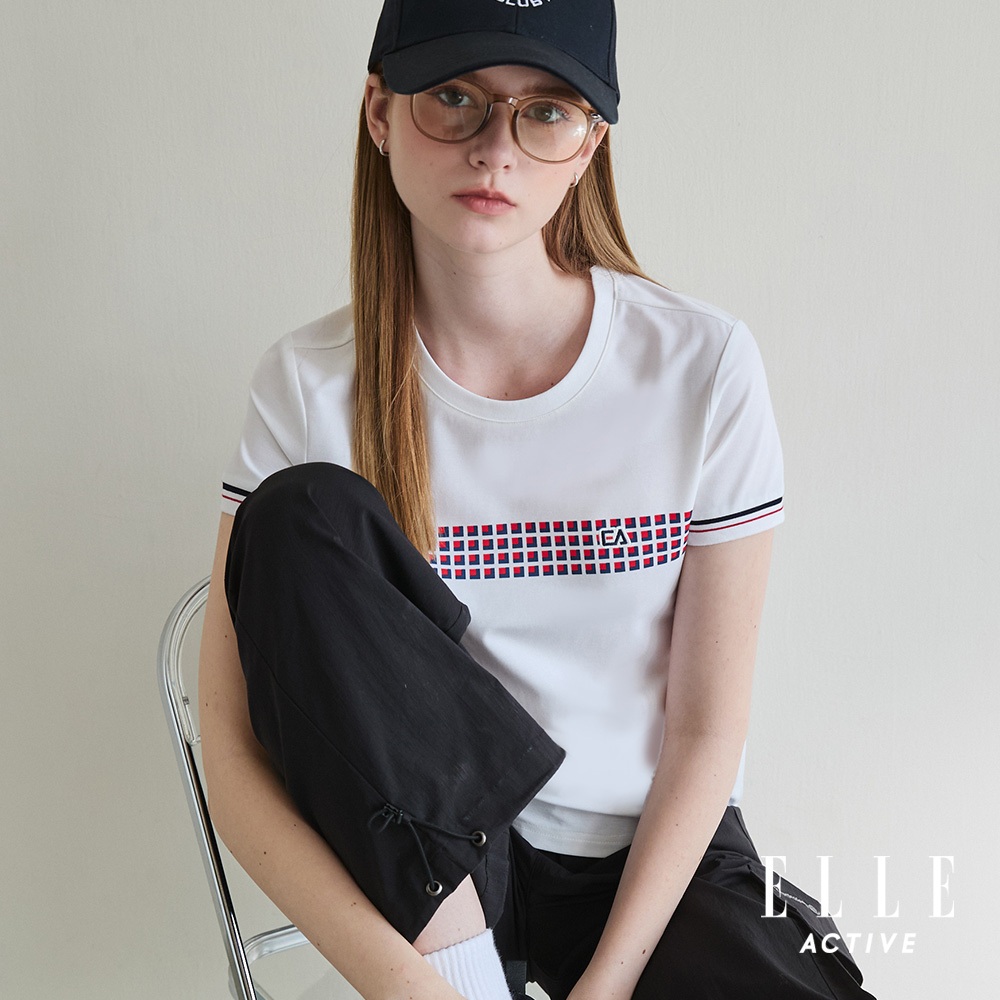 【ELLE ACTIVE】女款 格紋拼接運動風短袖T恤-白色 (EA25S1W1609-90)S-002|M-003|L-004|XL-005|2L-006T-shirtsELLE ACTIVE 品牌旗艦館
