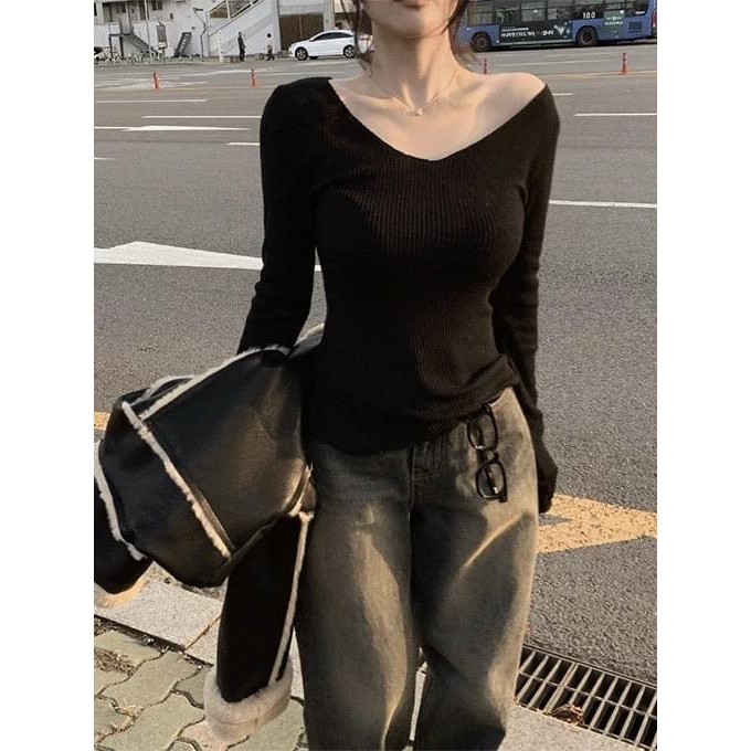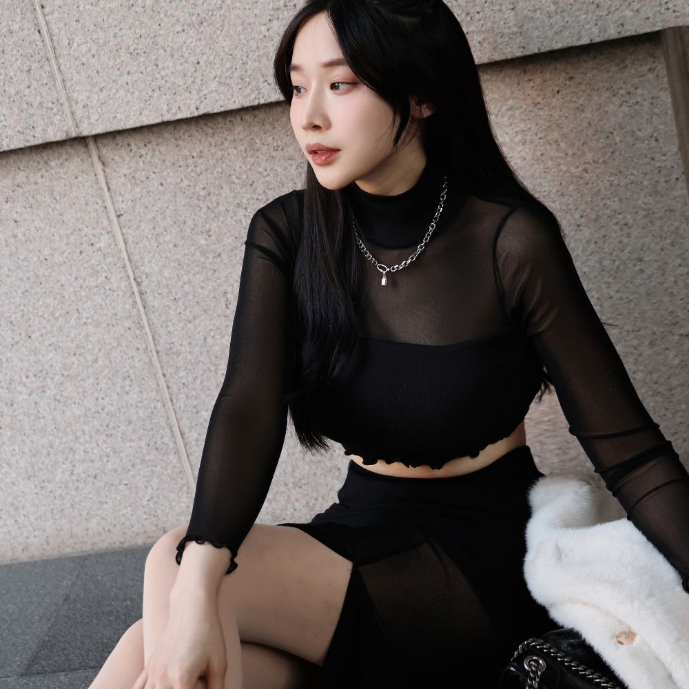 Codibook|韓國 henique 透膚感露肩長袖緊身上衣[預購]長袖上衣 T恤 女裝象牙白|粉紅色|天空藍|黑色T-shirtsCodibook 韓國女裝購物平台