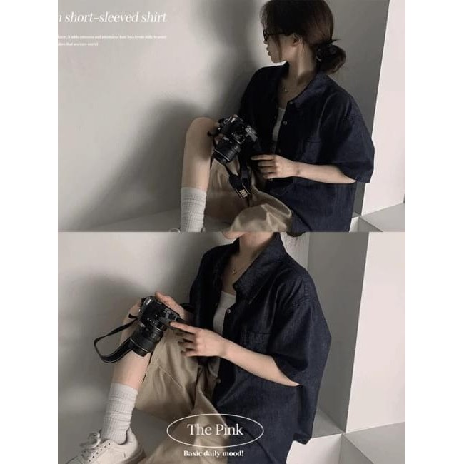 Codibook|韓國 thepink 不褪色牛仔短袖襯衫[預購]短袖上衣 襯衫 女裝天空藍,free|藍色,free|深藍色,free|黑丹寧,freeT-shirtsCodibook 韓國女裝購物平台