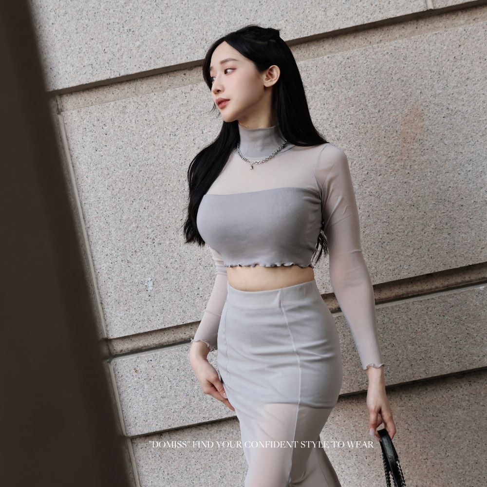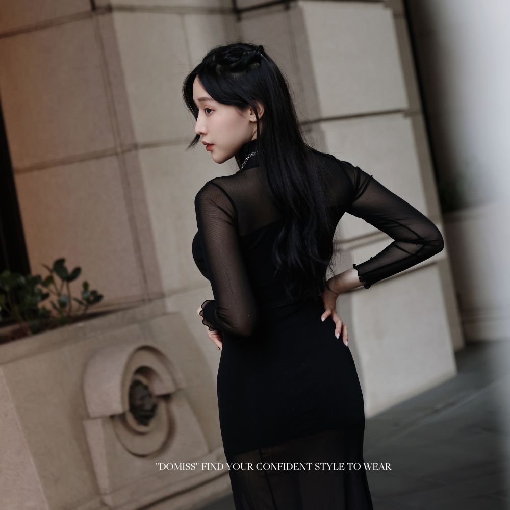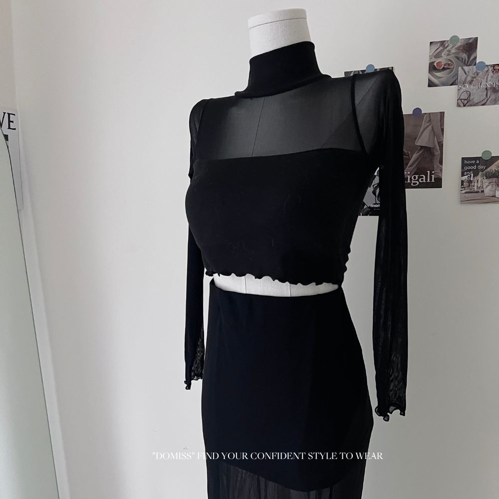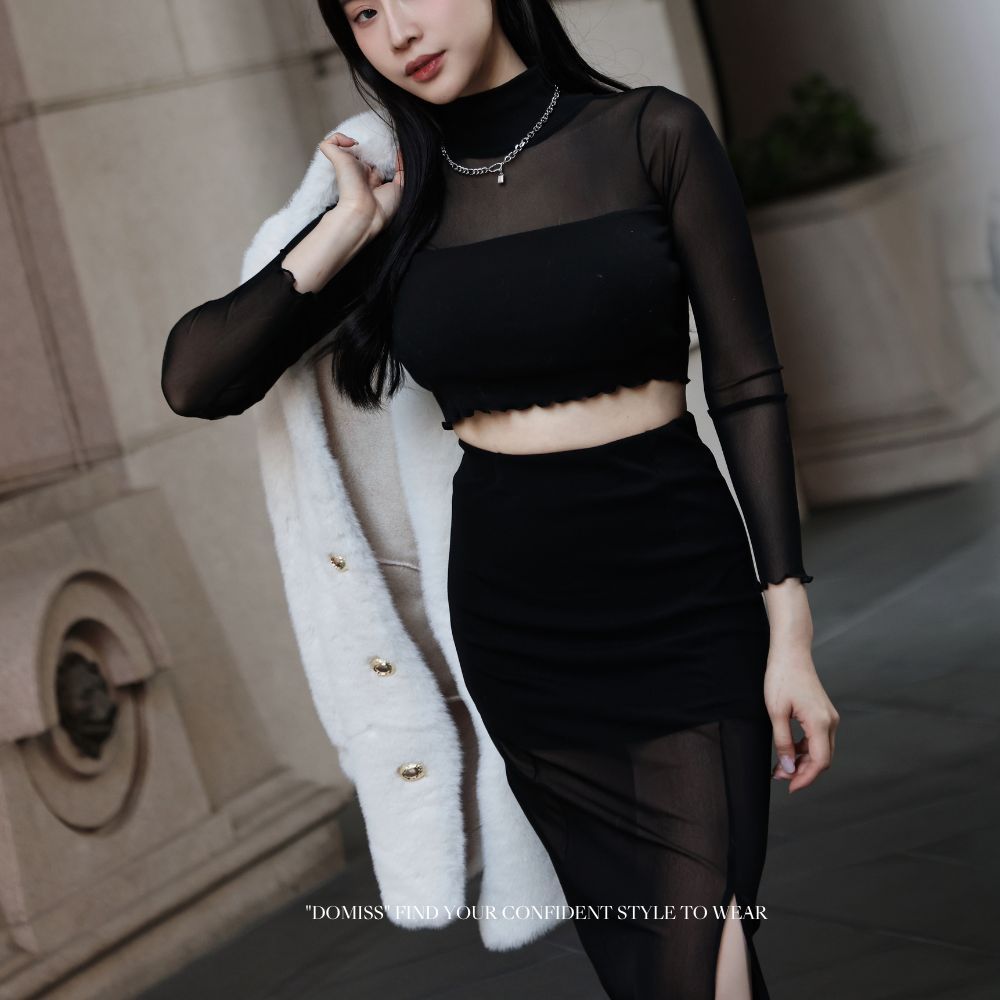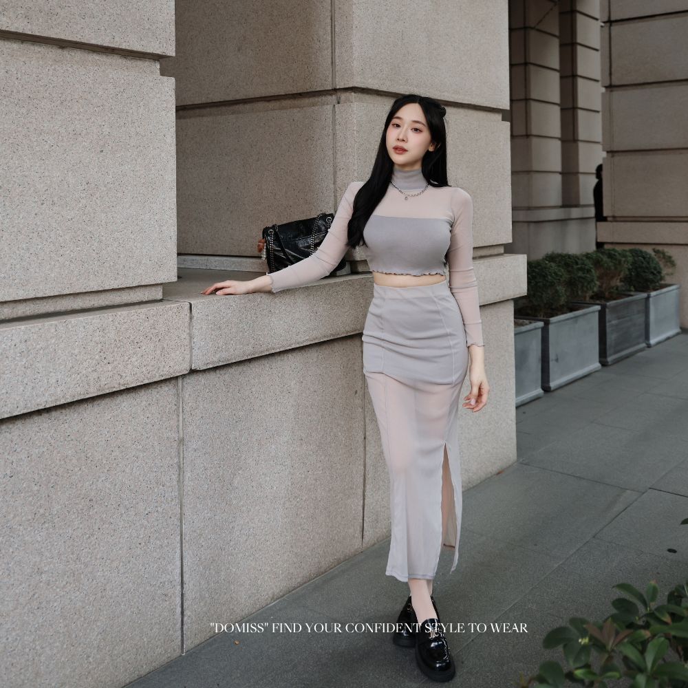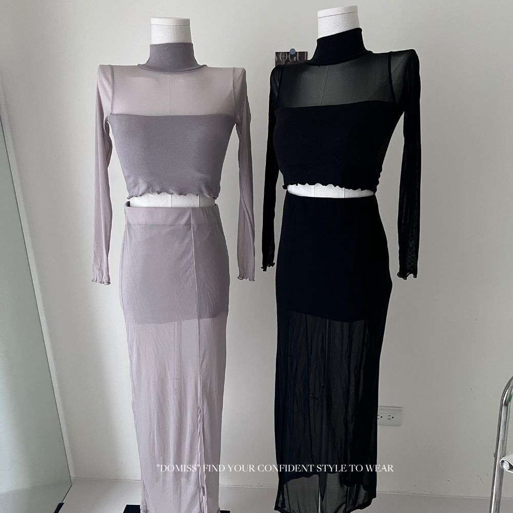 【DOMISS自訂】半透明的誘惑! 神秘柔霧網紗洋裝-兩件套 洋裝 (現貨)黑色 (上衣+長裙兩件套)|灰色 (上衣+長裙兩件套)DOMISS 朵蜜絲