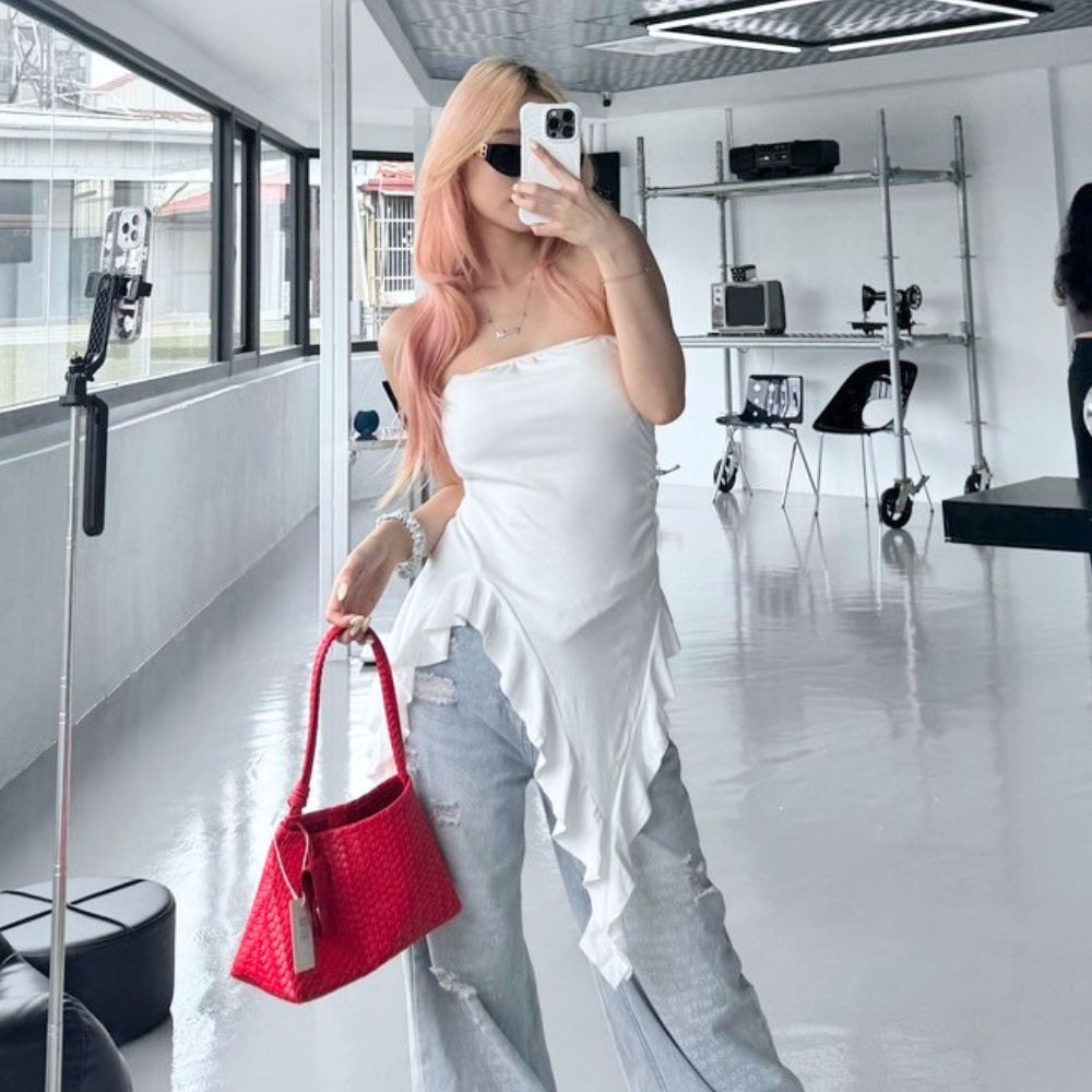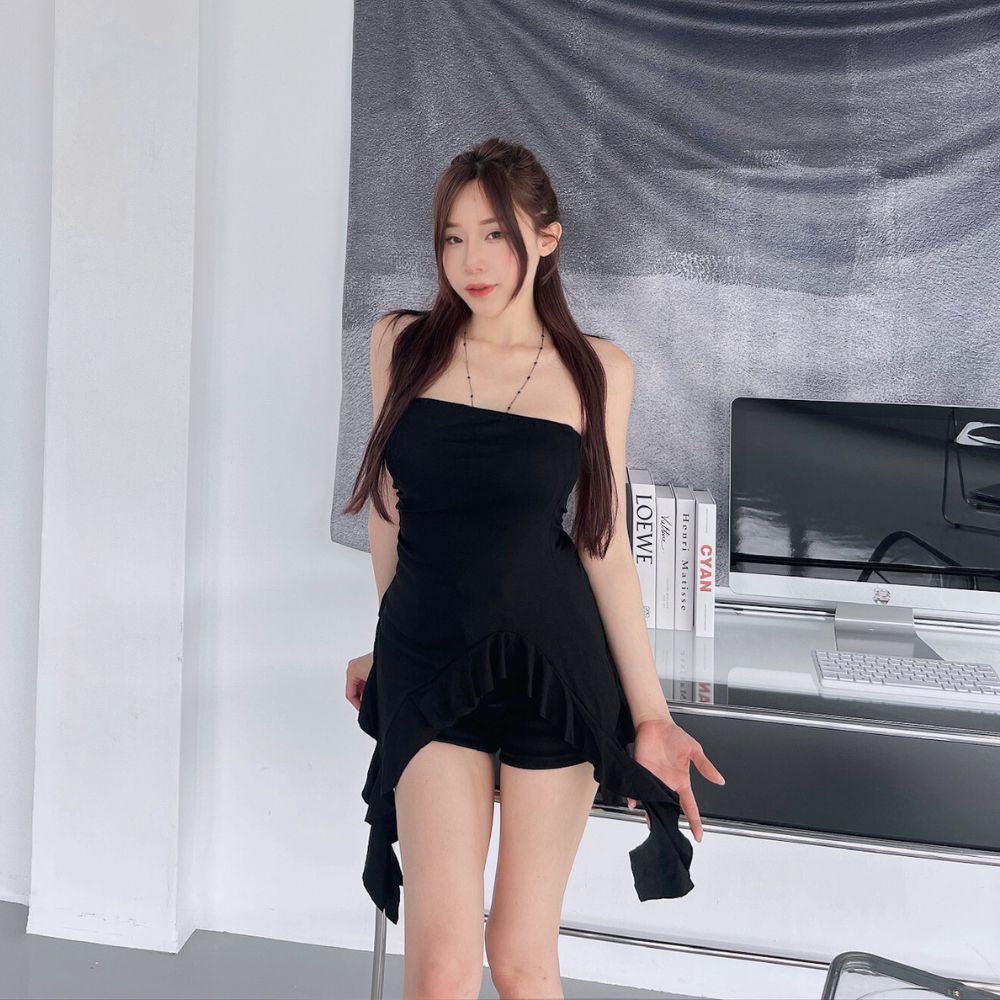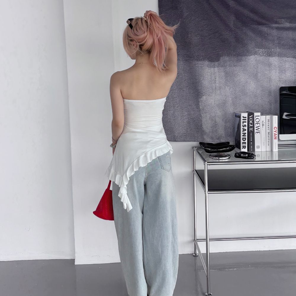 【出片神器】DOMISS斜擺不規則平口上衣 背心-2色(現貨)白色|黑色Tube TopsDOMISS 朵蜜絲