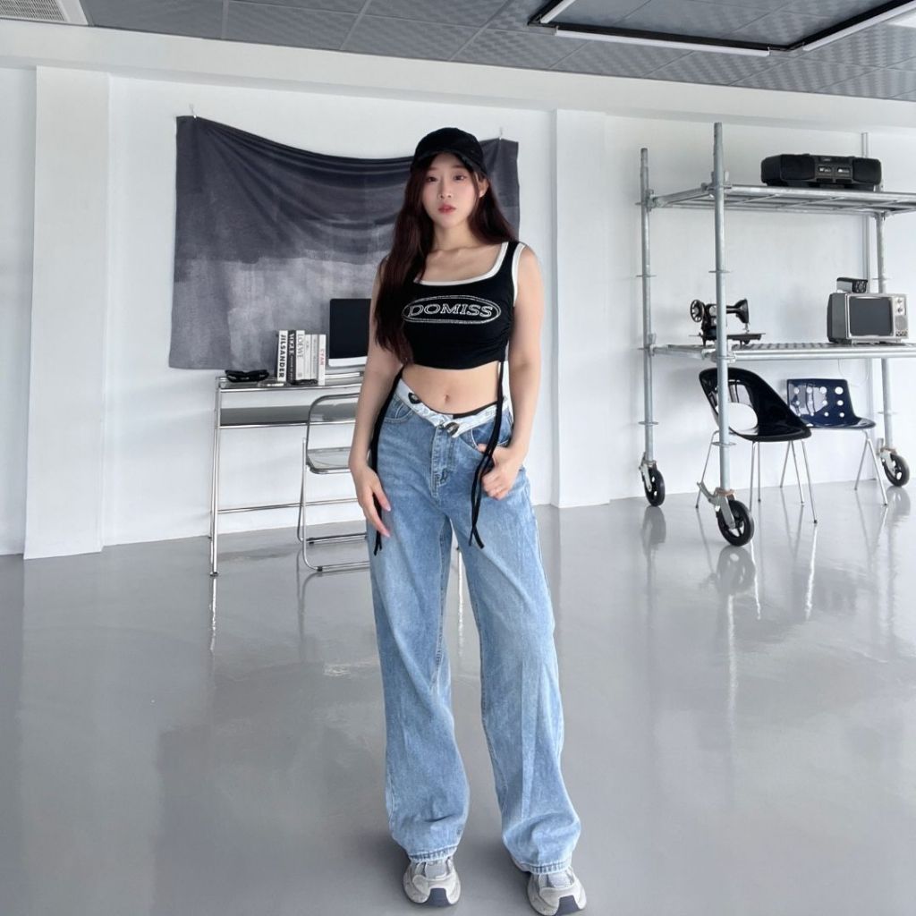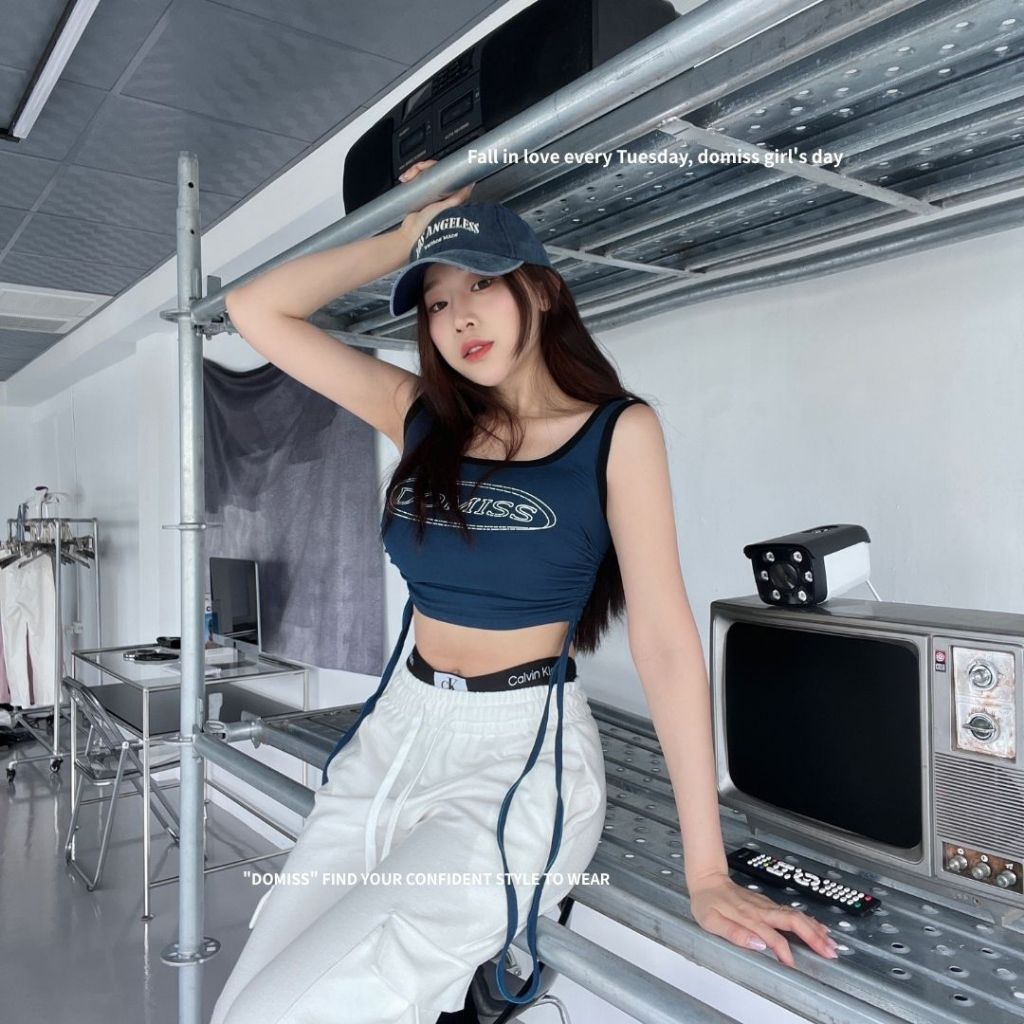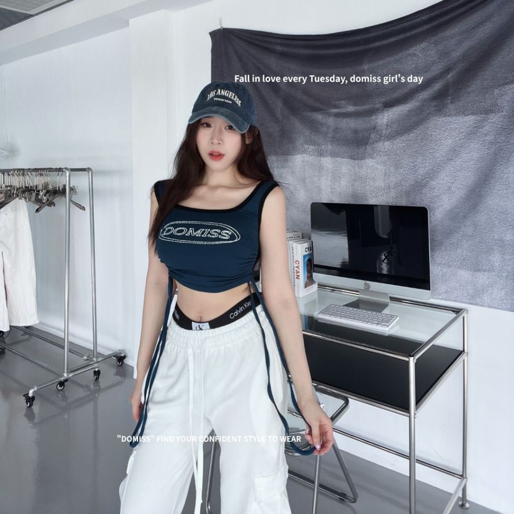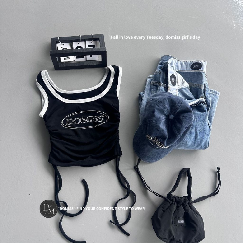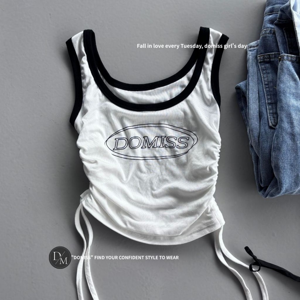 【DOMISS自訂】個性百搭撞色抽繩無袖背心-3色(現貨)藍色|黑色|白色Tanks & CamisolesDOMISS 朵蜜絲