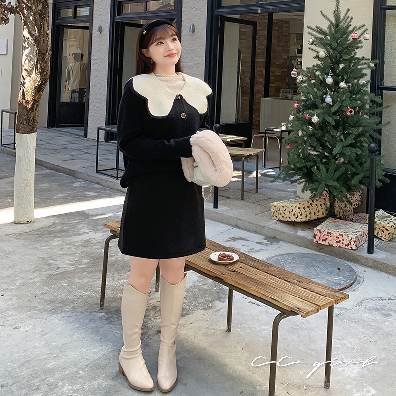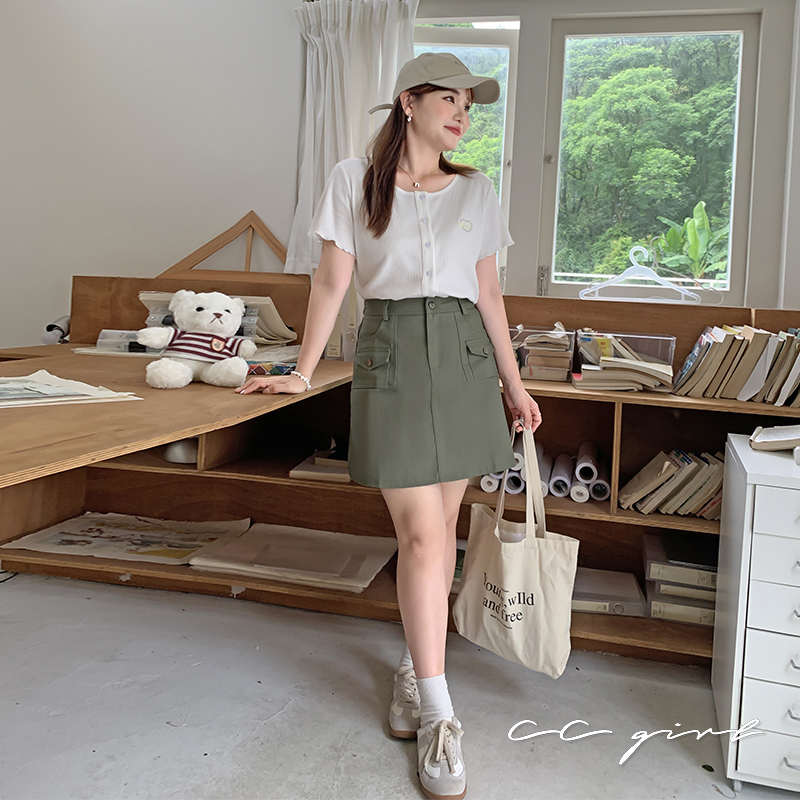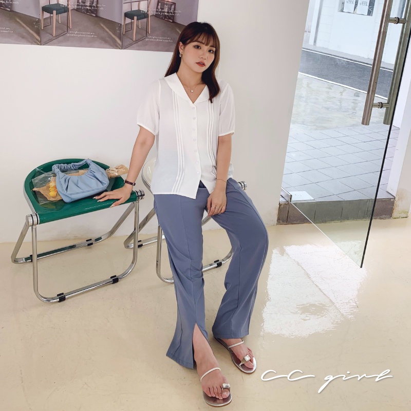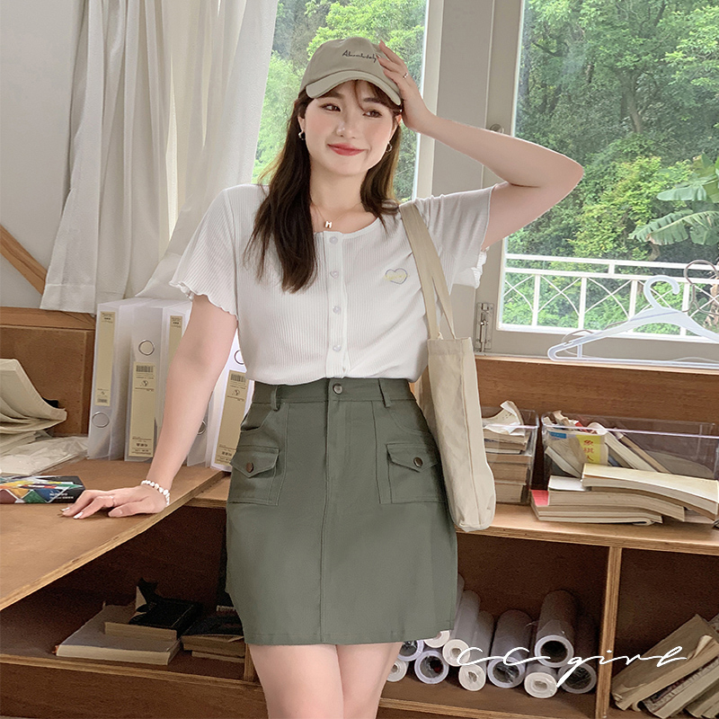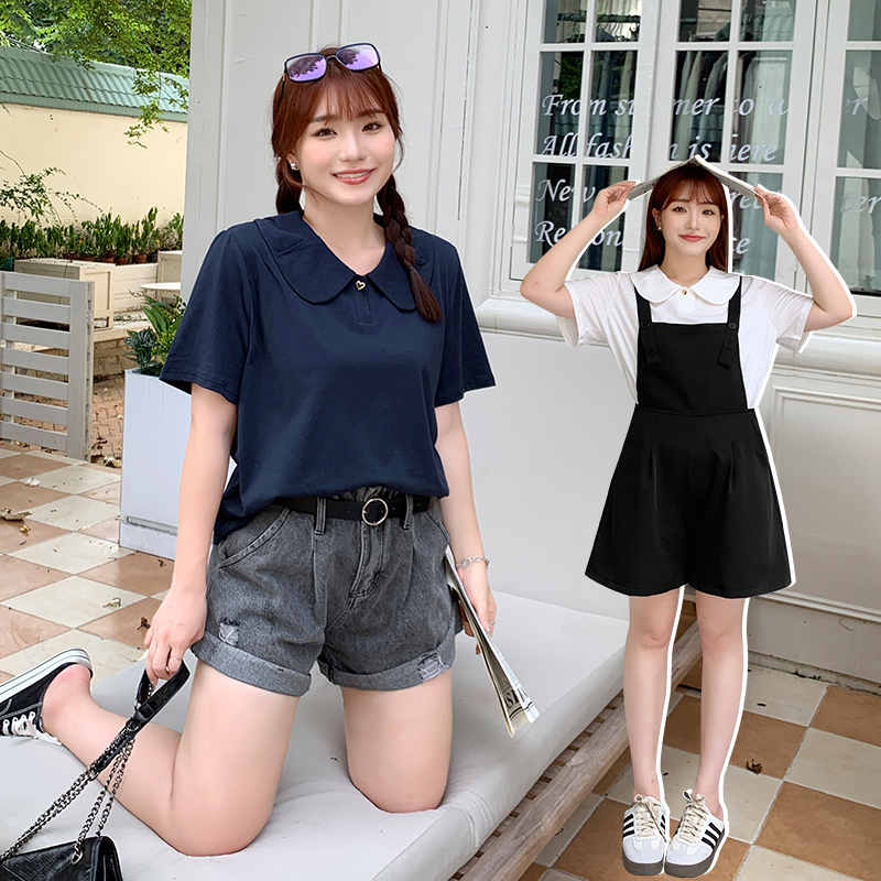 CCGIRL中大尺碼 小愛心裝飾釦♡甜美娃娃領短版上衣-共2色-適M~5L《31812》大尺碼女裝 中大尺碼上衣