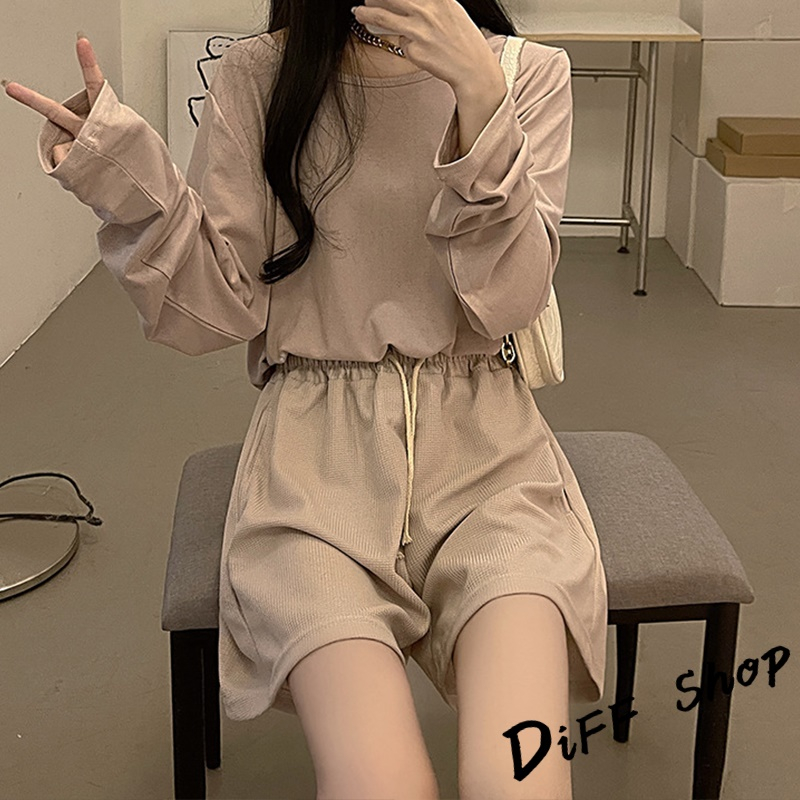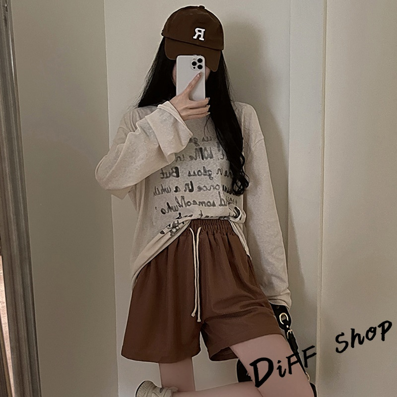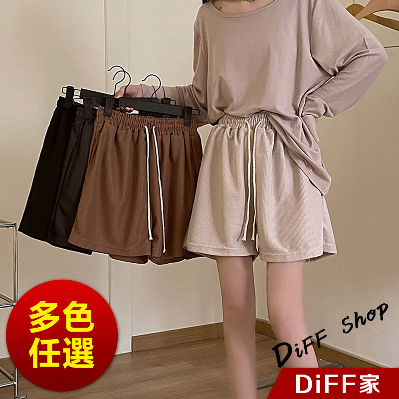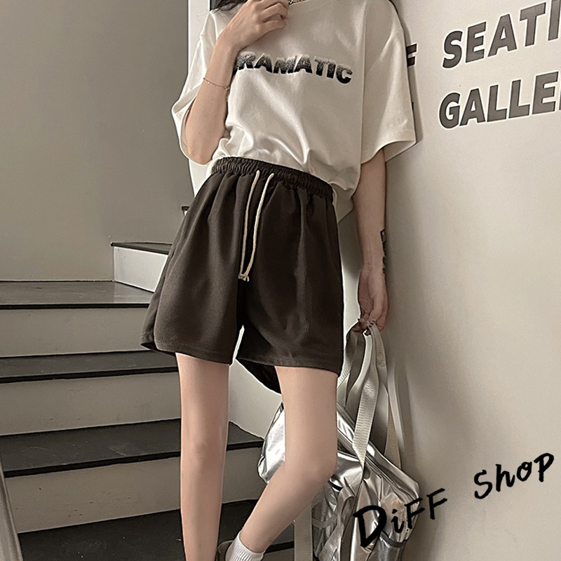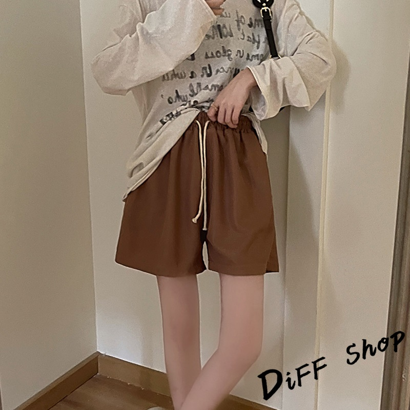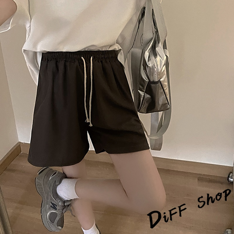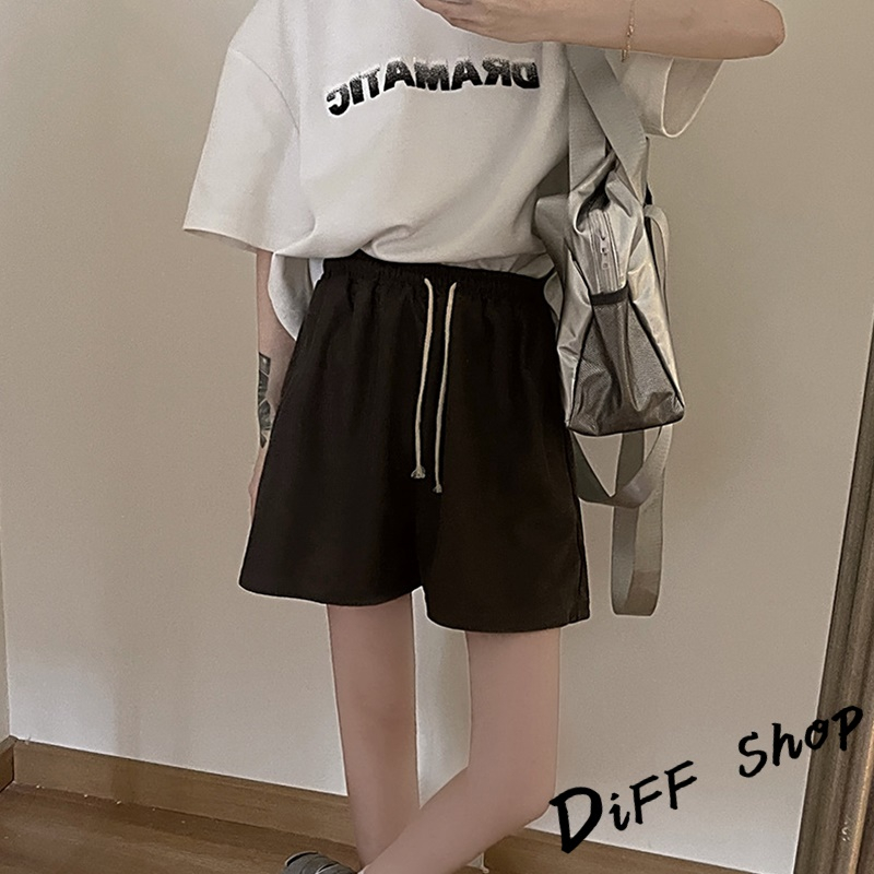 【DIFF】韓版鬆緊高腰休閒直筒垂感運動短褲 休閒褲 短褲 褲子 運動短褲 女裝 休閒短褲 寬褲 運動褲【P208】【P208】焦糖|【P208】杏色|【P208】黑色|【P208】深灰ShortsDiFF shop