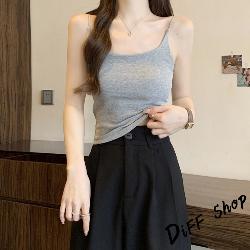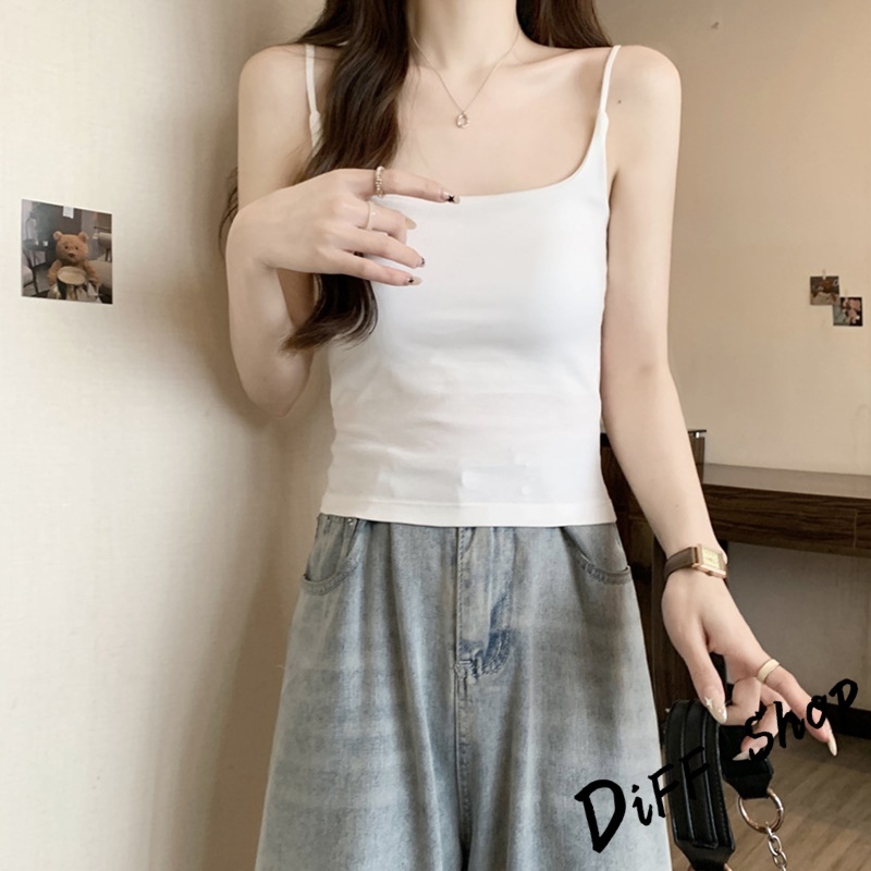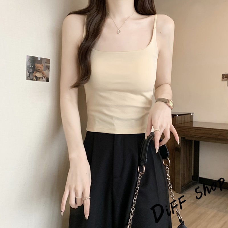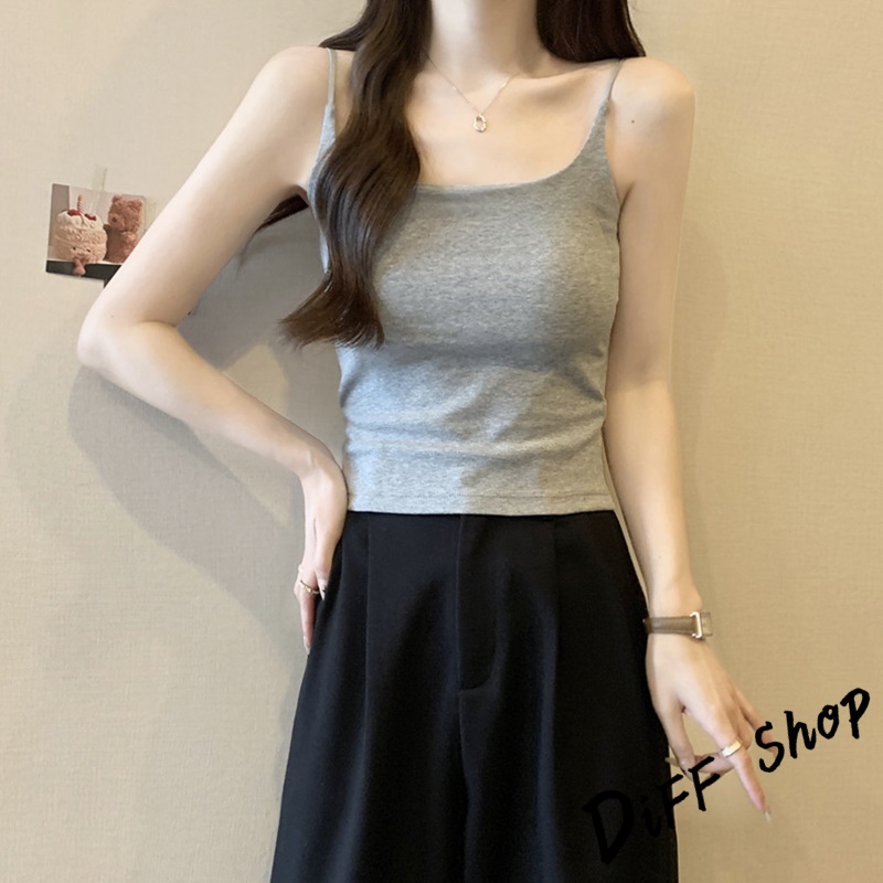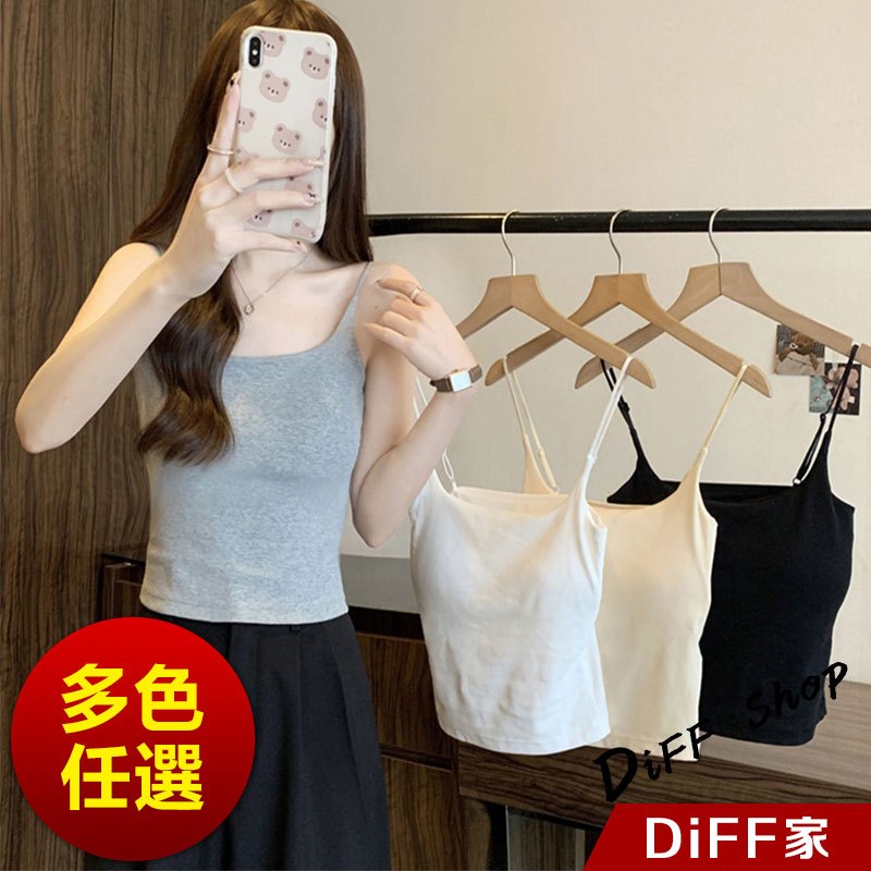 【DIFF】韓版美背細肩背心 帶胸墊免穿內衣 小可愛 女裝 衣服 短版上衣 小背心 夏天女裝 運動背心 內搭【V278】【V278】黑色|【V278】白色|【V278】卡其色|【V278】灰色|【V278】粉色Tanks & CamisolesDiFF shop