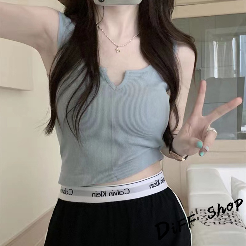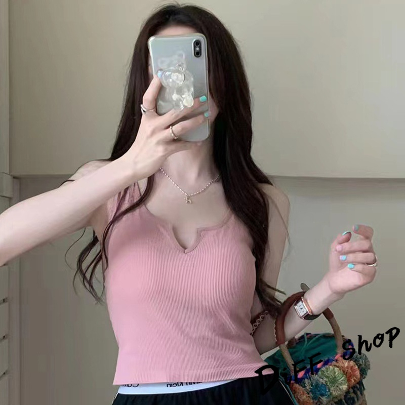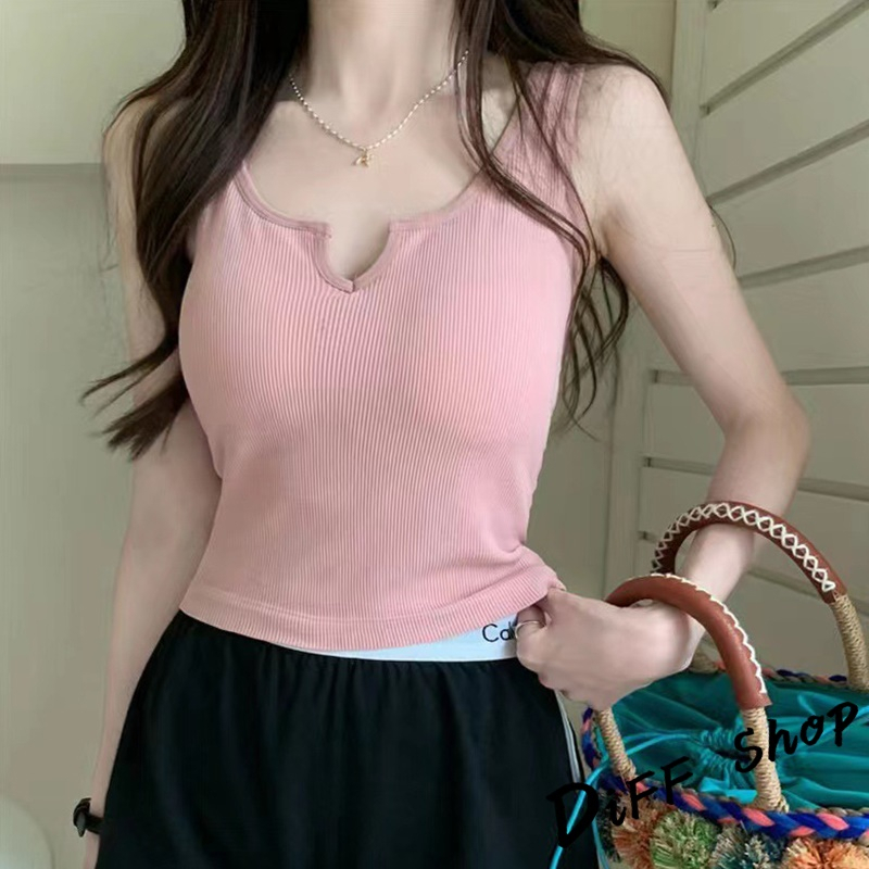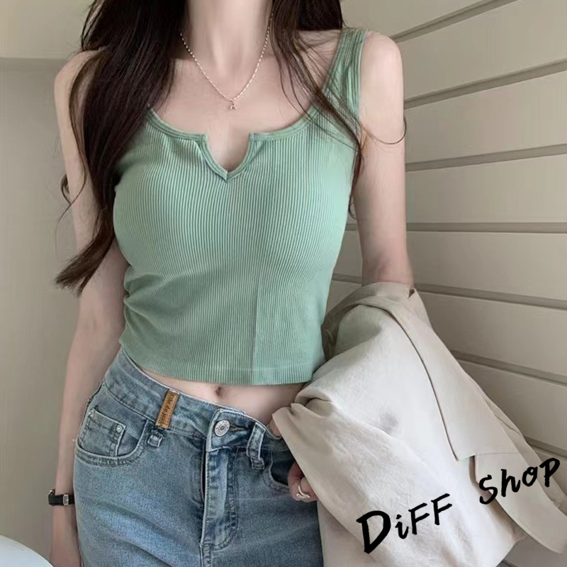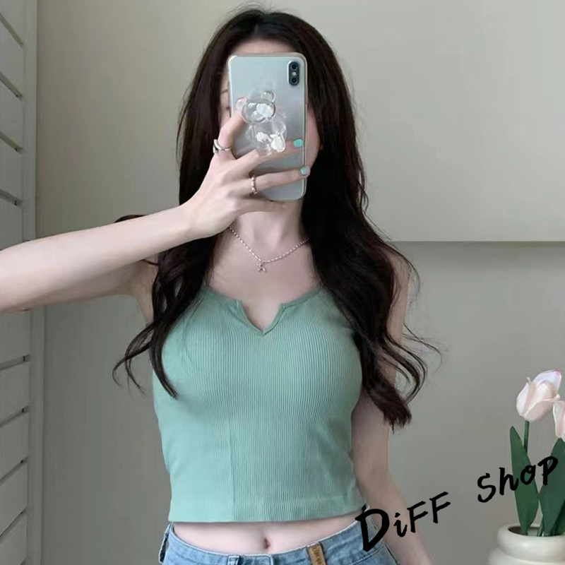 【DIFF】韓版經典基本款小V領打底背心 帶胸墊免穿內衣 上衣 小可愛 女裝 衣服 短版上衣 短板上衣【V266】【V266】藍色|【V266】灰色|【V266】黑色|【V266】白色|【V266】粉色|【V266】綠色Tanks & CamisolesDiFF shop