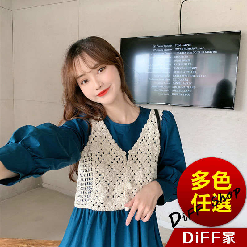 【DIFF】韓版鏤空百搭無袖針織背心 小外套 上衣 小可愛 女裝 衣服 短版上衣 短板上衣【V300】【V300】白色|【V300】杏色DiFF shop