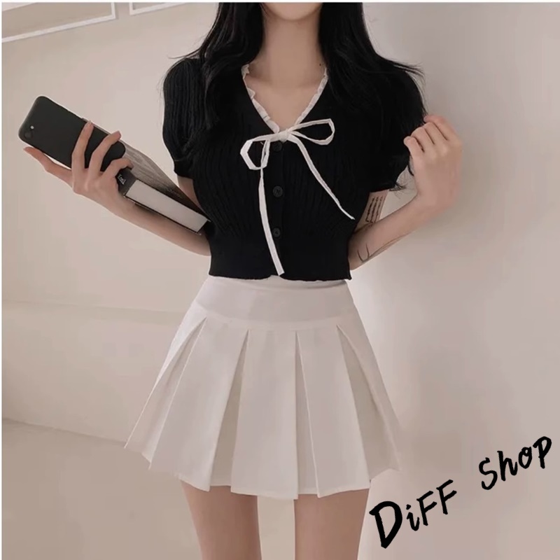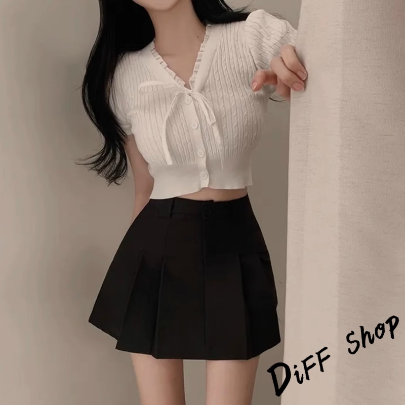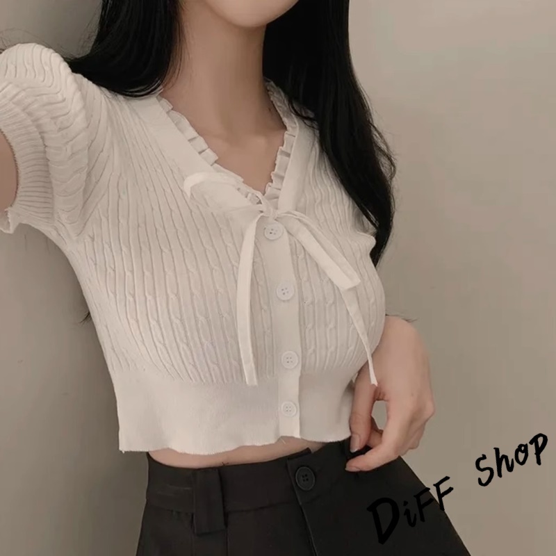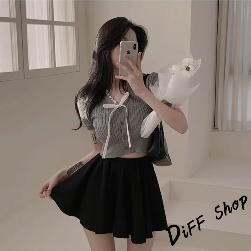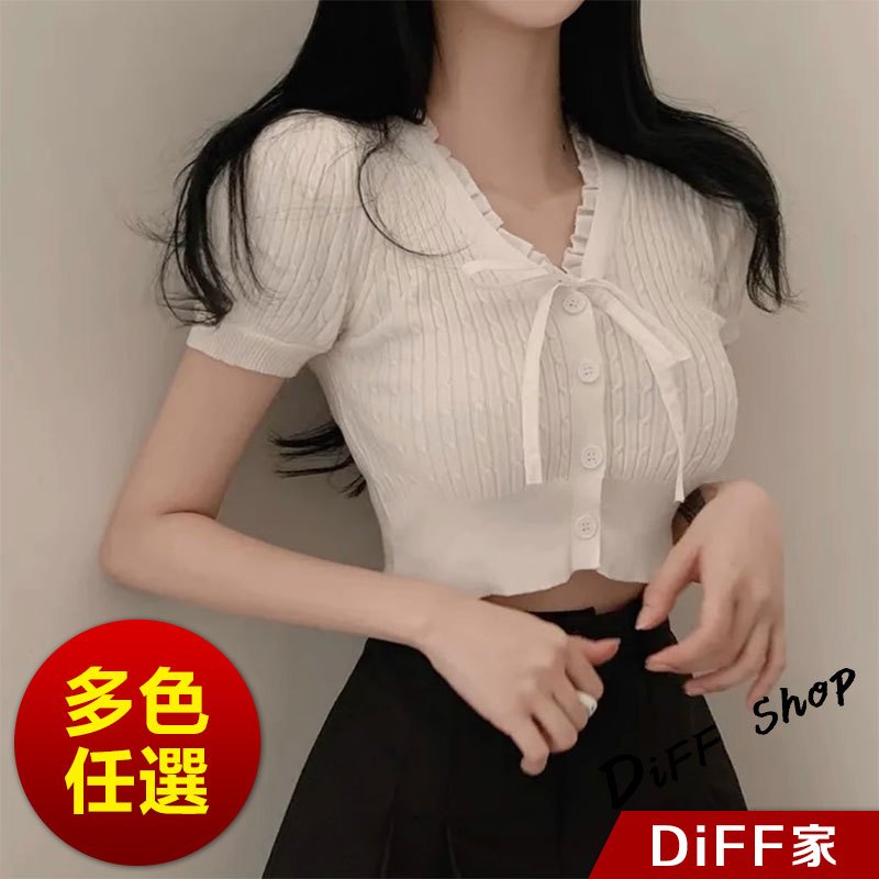 【DIFF】韓版氣質繫帶設計感針織上衣 短袖上衣 衣服 夏天女裝 短板上衣 短版t恤 女裝 短袖t恤女【T649】【T649】灰色|【T649】黑色|【T649】杏色|【T649】白色DiFF shop