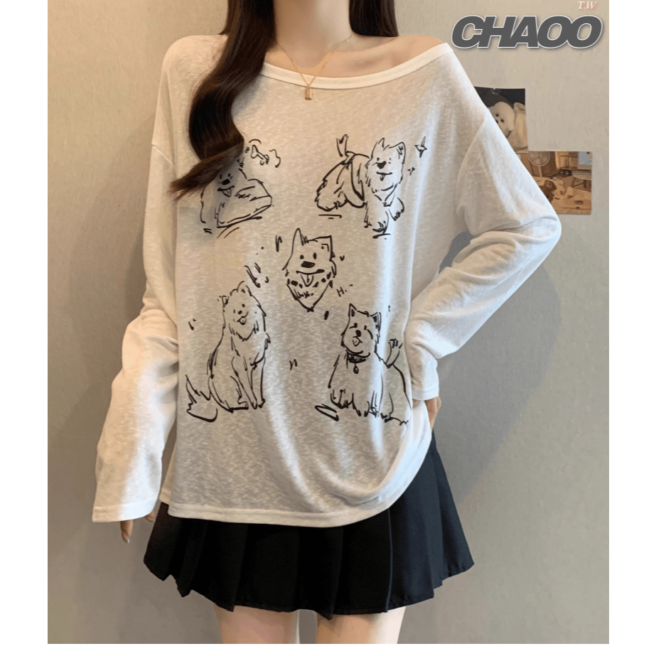 可鹽可甜~有範! 罩衫 女生罩衫 韓系衣服女 快樂小狗 長版罩衫 防曬罩衫 薄紗罩衫 透膚罩衫 白色罩衫 夏季 韓系穿搭主圖款【快樂小狗】,F【均碼】|A1【聽歌貓咪】,F【均碼】|A2【簡約字母】,F【均碼】|A3【潮牌英文】,F【均碼】CHAOO 台北原創服飾品牌