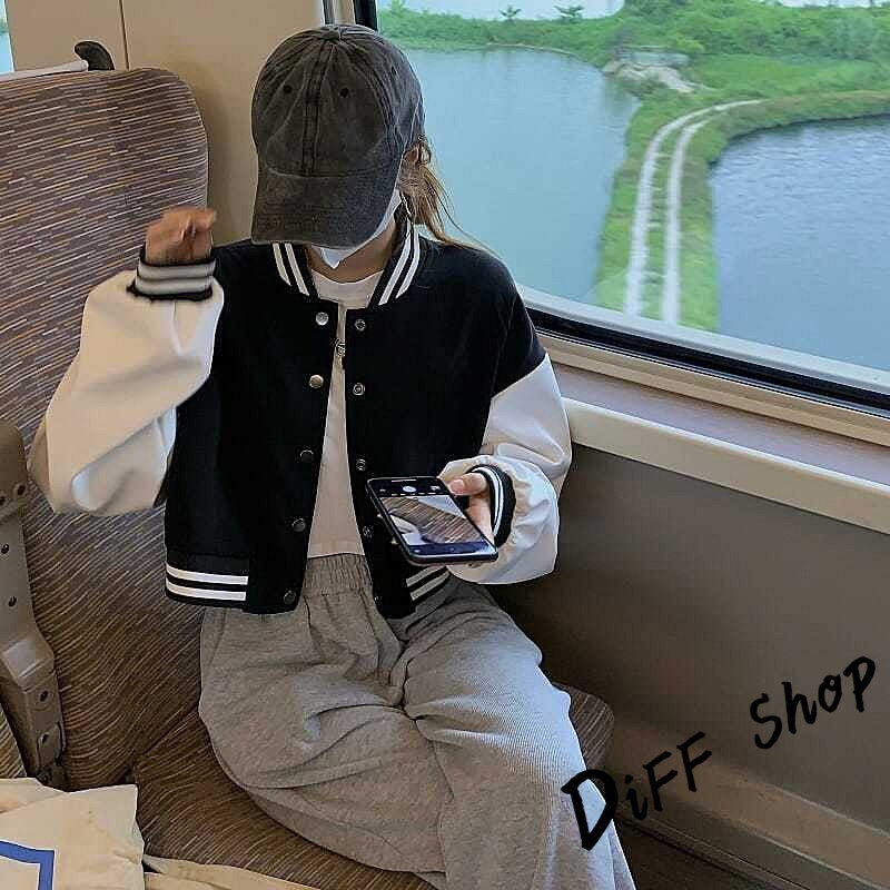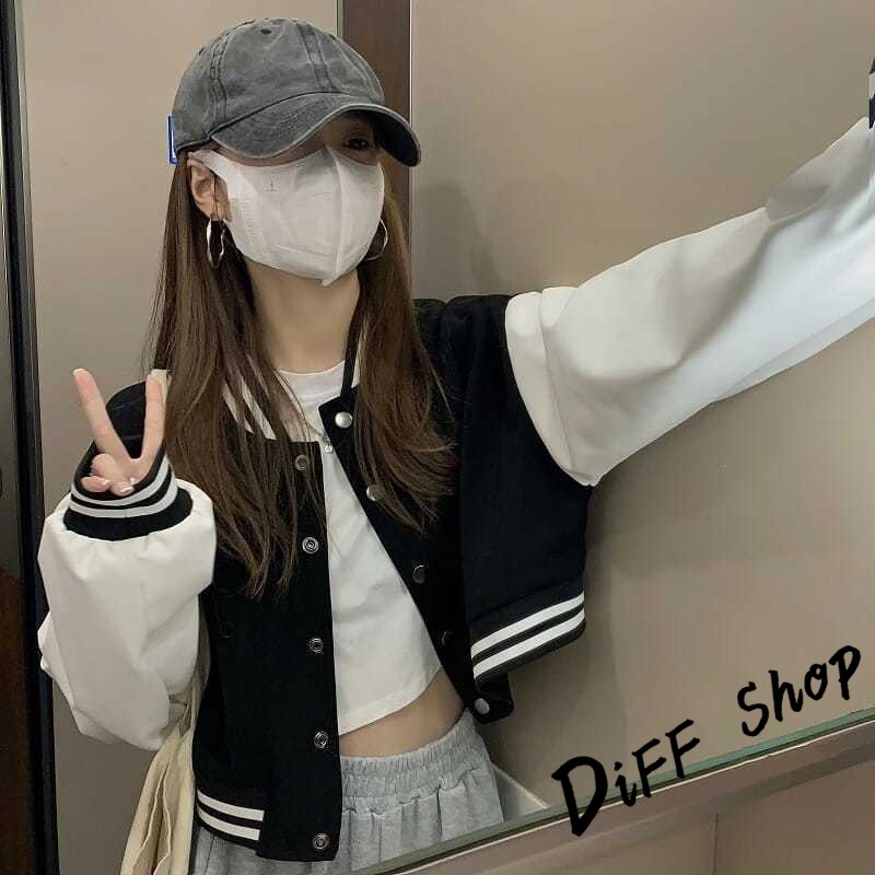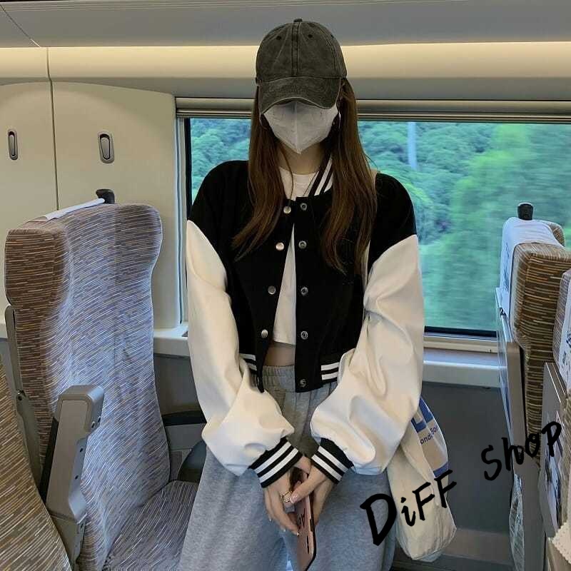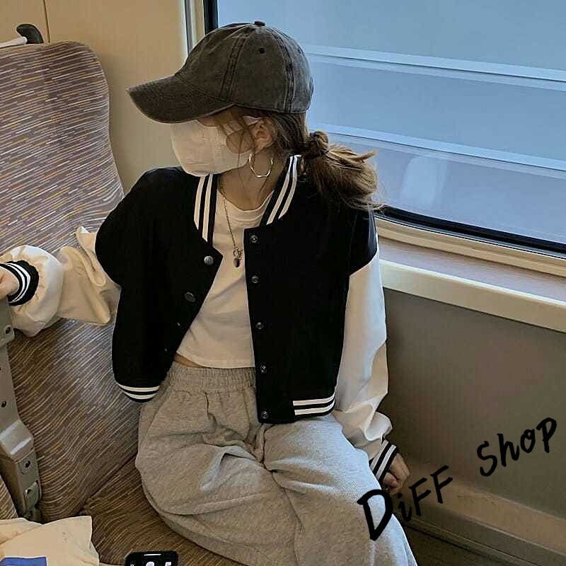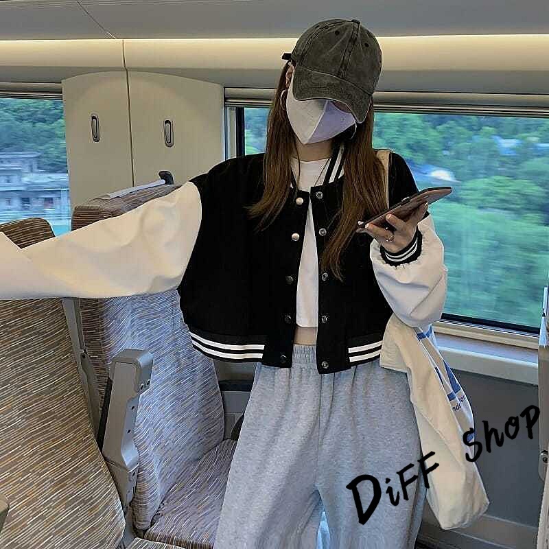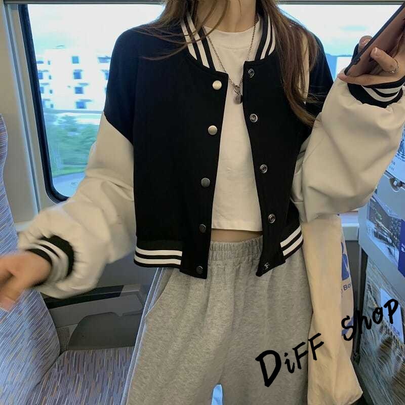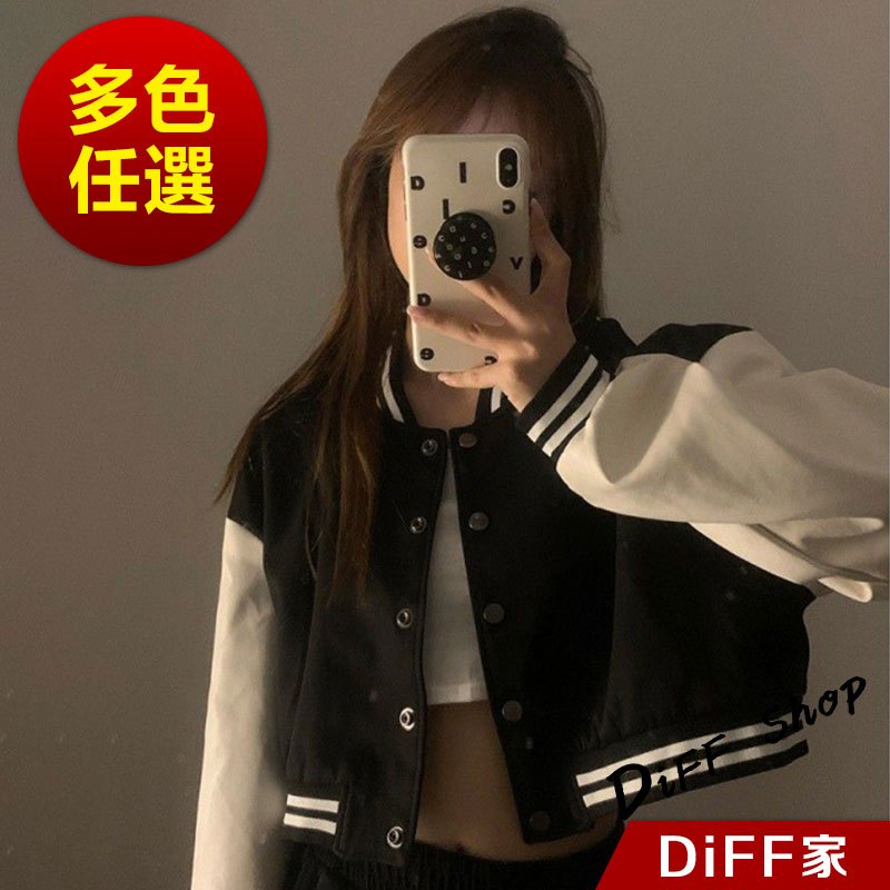 【DIFF】韓版運動風單排扣短版棒球外套 短版外套 上衣 女裝 衣服 外套 薄外套 罩衫 小外套 長袖上衣【J266】【J266】黑色JacketsDiFF shop