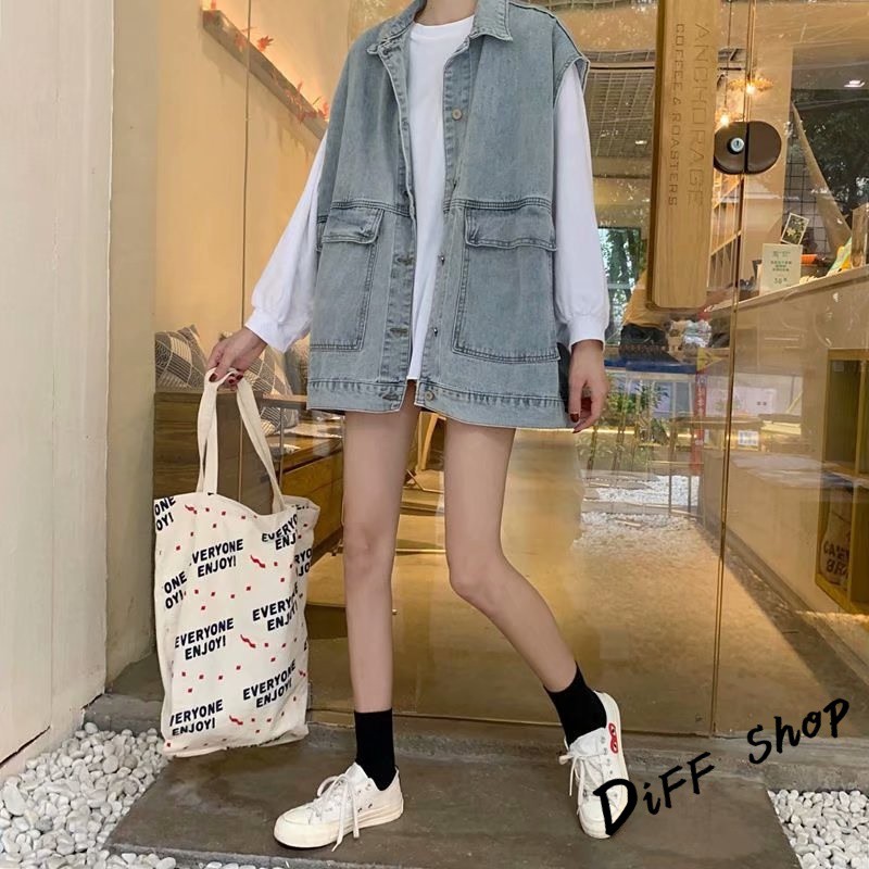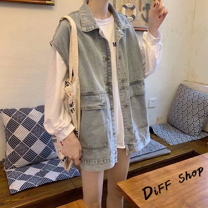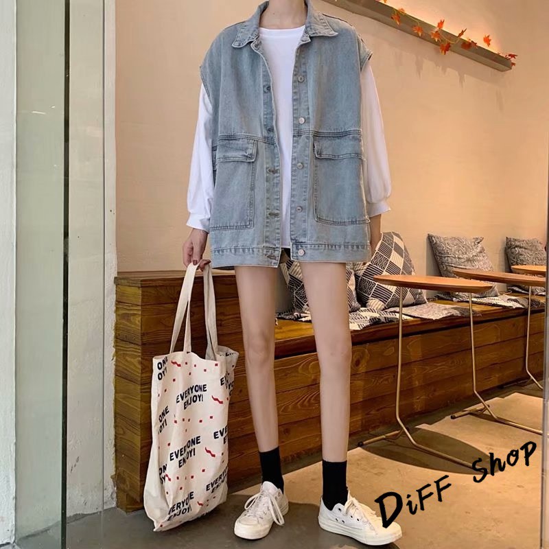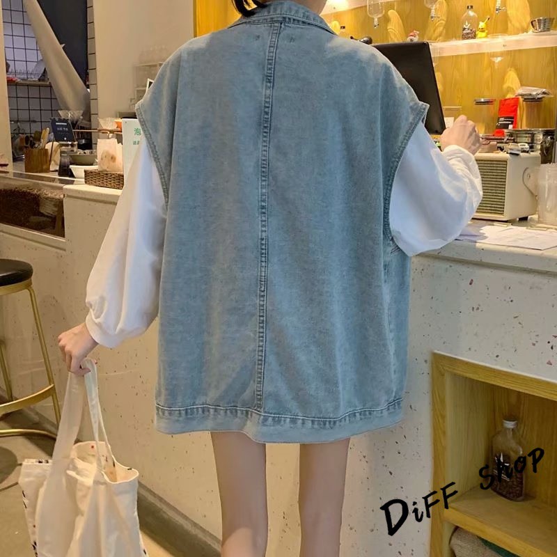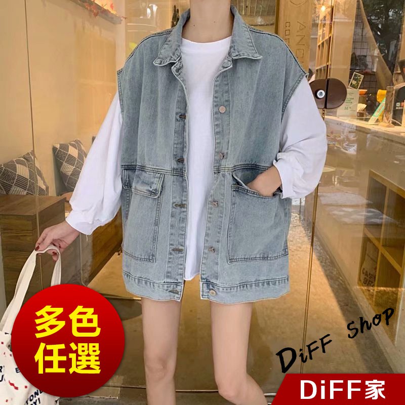 【DIFF】韓版寬鬆百搭無袖牛仔外套 牛仔背心 上衣 女裝 衣服 外套【J124】【J124】淺藍|【J124】黑灰VestsDiFF shop