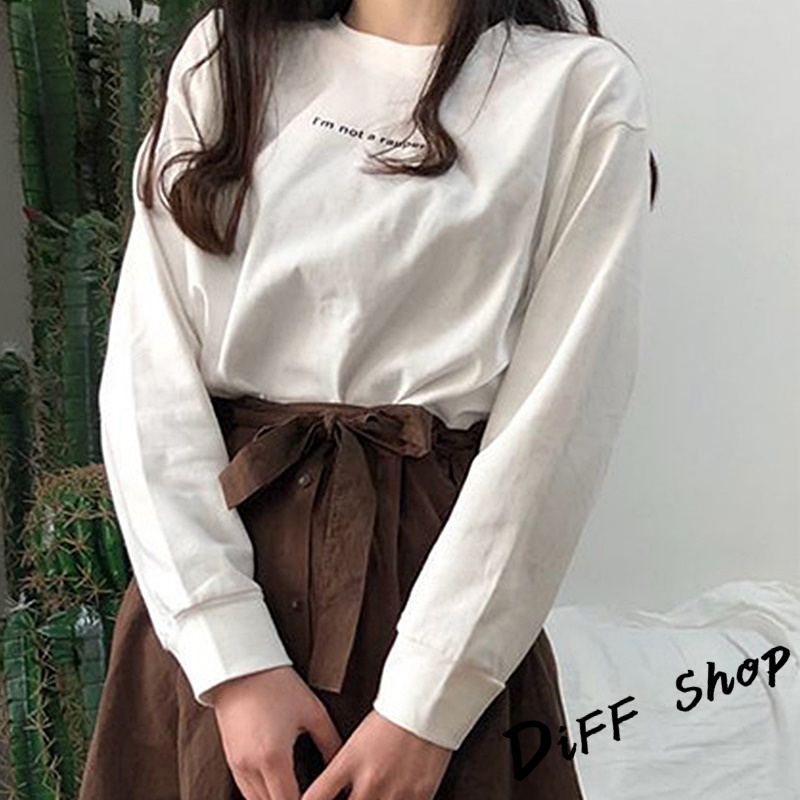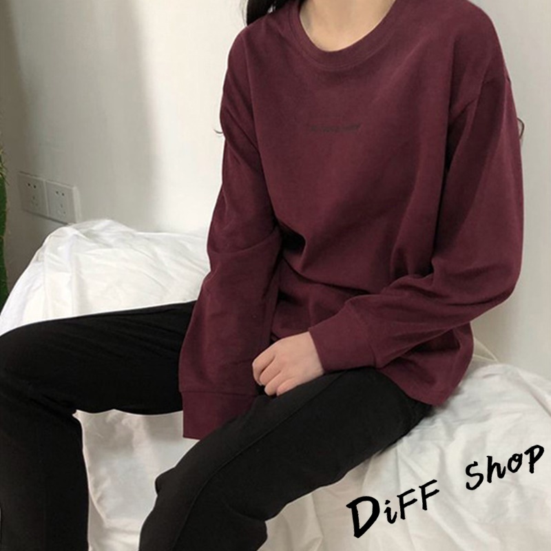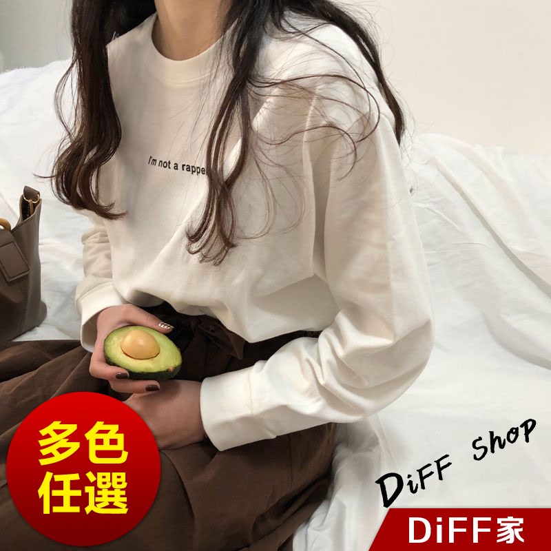 【DIFF】韓版寬鬆字母長袖上衣 女裝 衣服 寬鬆上衣 顯瘦上衣 長袖t恤 冬裝【W341】【W341】白色|【W341】酒紅|【W341】黑色T-shirtsDiFF shop