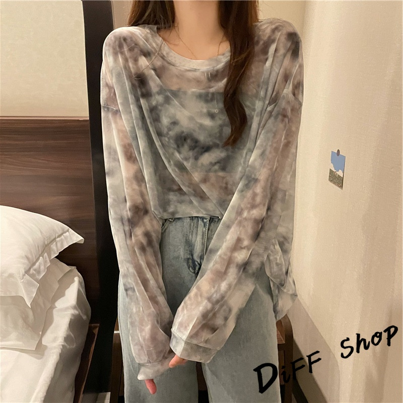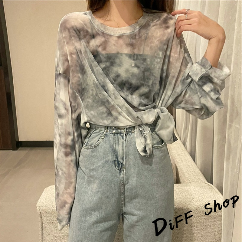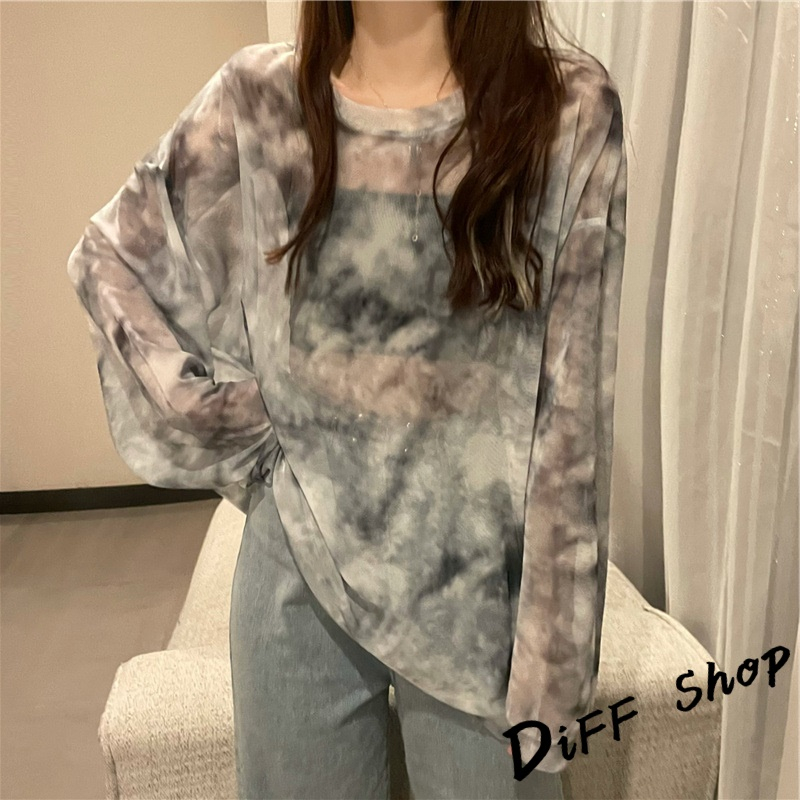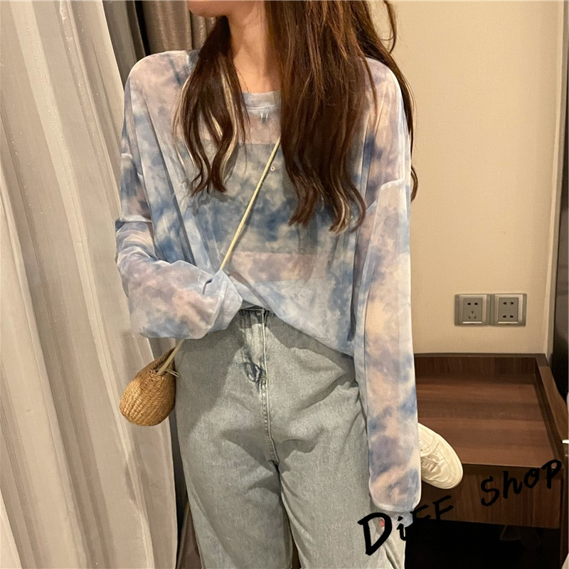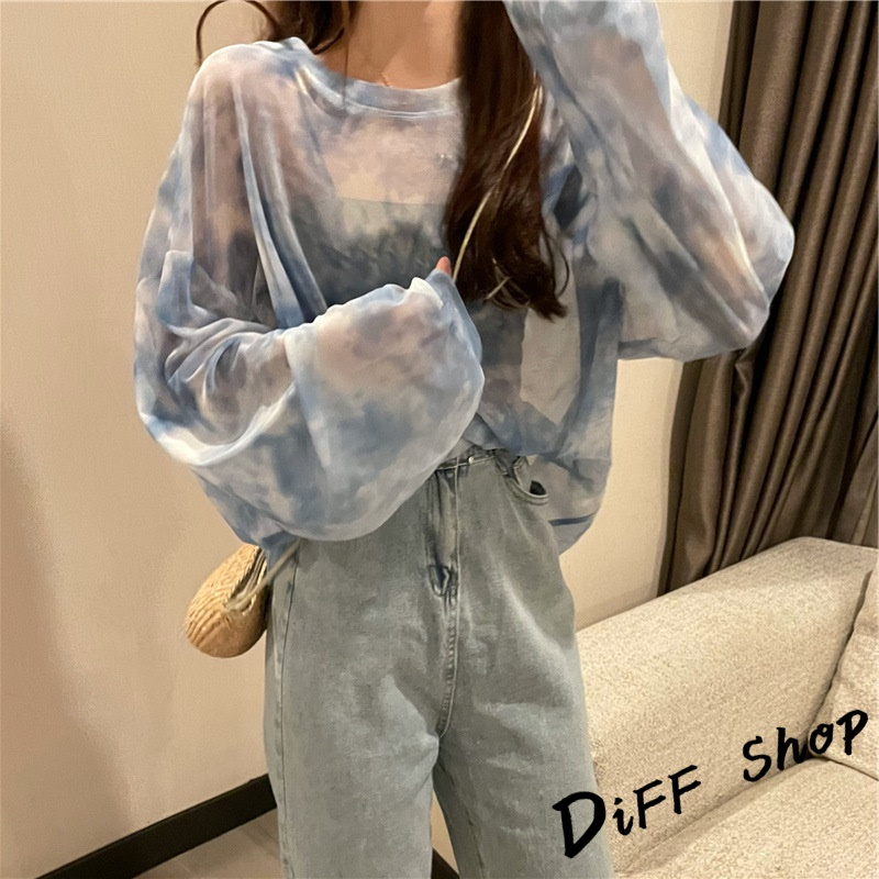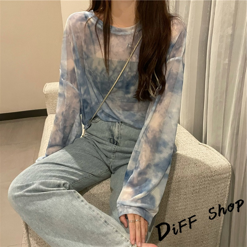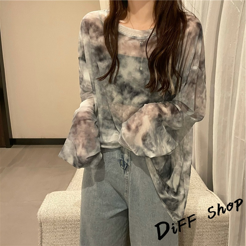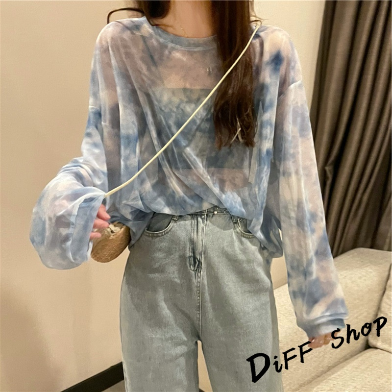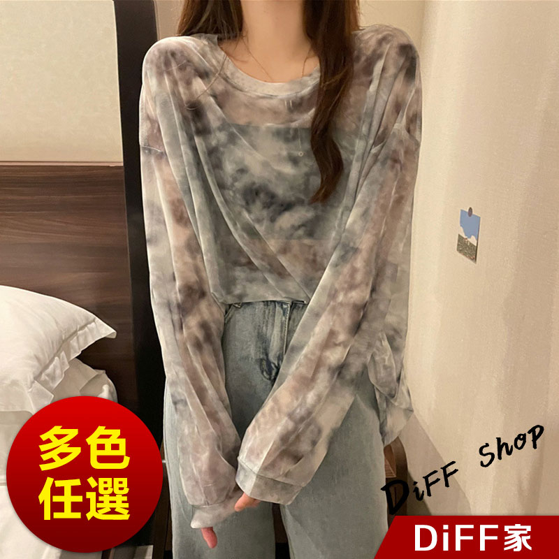 【DIFF】韓版寬鬆透視炫彩防曬上衣 女裝 衣服 外套 長袖上衣 薄外套 罩衫 防曬外套【W211】【W211】灰色|【W211】藍色T-shirtsDiFF shop