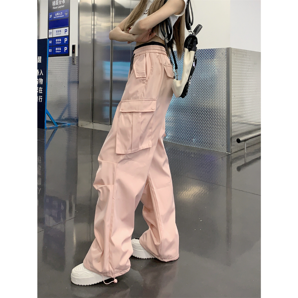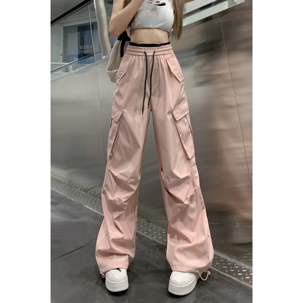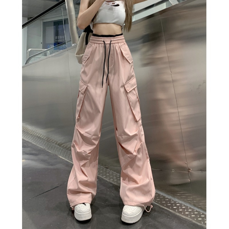 梨形身材的剋星!工裝褲 寬褲 女工裝褲 女 寬褲 高腰長褲 梨形身材褲子 高腰工裝褲 高腰 抽繩工裝褲 顯瘦長褲 裤子女粉紅,S|粉紅,M|粉紅,LPantsCHAOO 台北原創服飾品牌