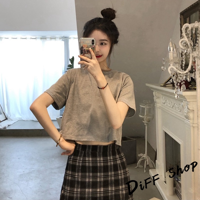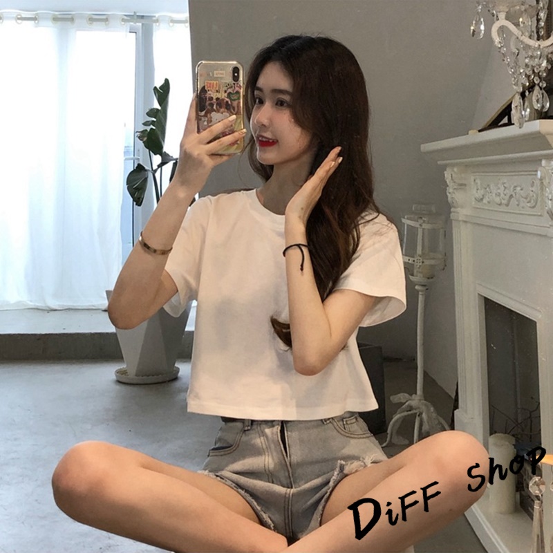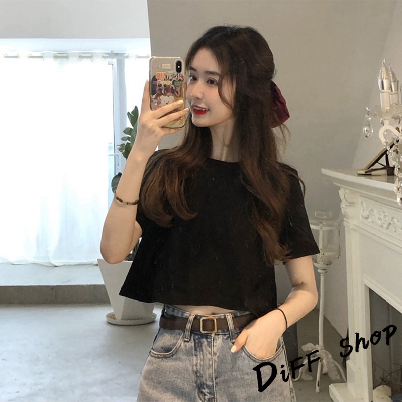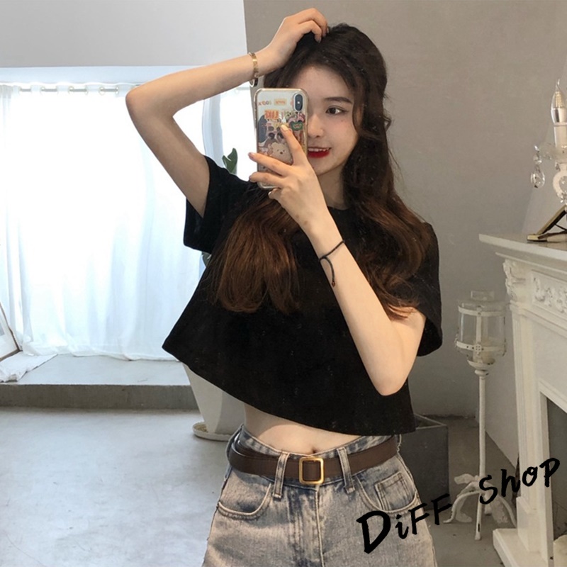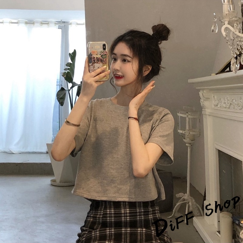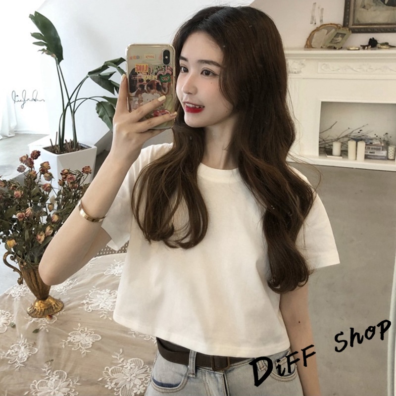 【DIFF】韓版顯瘦短版小個子短袖上衣 短袖t恤 女裝 顯瘦上衣 衣服 寬鬆上衣 素T 短板上衣 短版上衣 【T392】【T392】黑色|【T392】白色|【T392】灰色T-shirtsDiFF shop