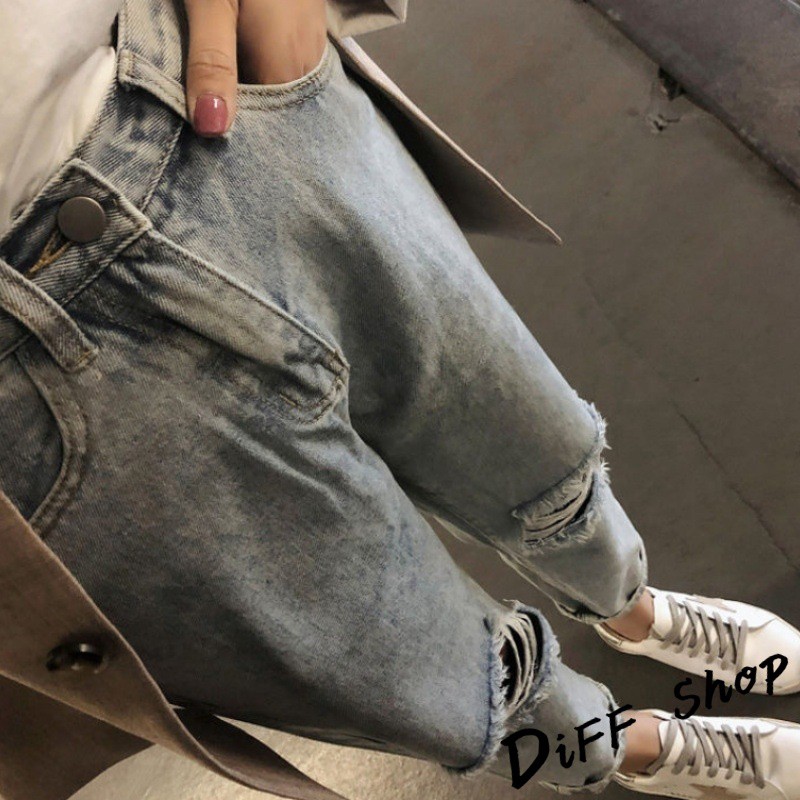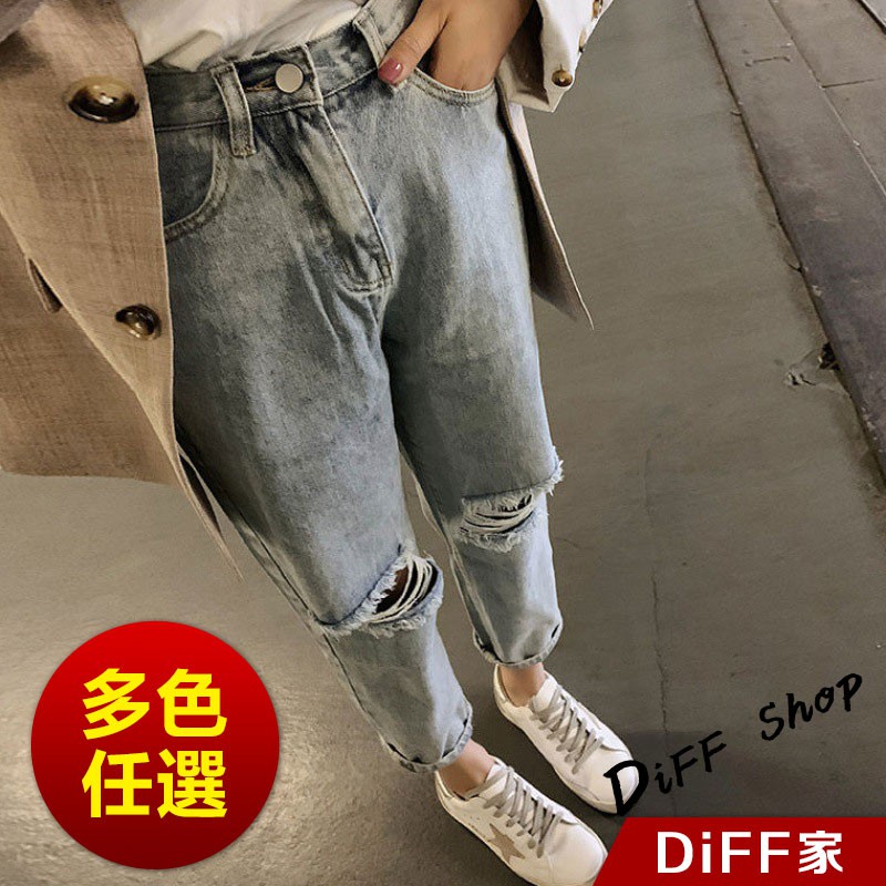 【DIFF】韓版夏季寬鬆高腰九分刷破牛仔褲 牛仔長褲 寬褲 褲子 長褲 休閒褲 女裝 工裝褲【P117】【P117】M號|【P117】L號|【P117】XL號DiFF shop