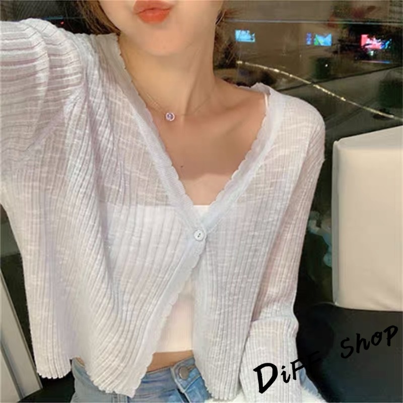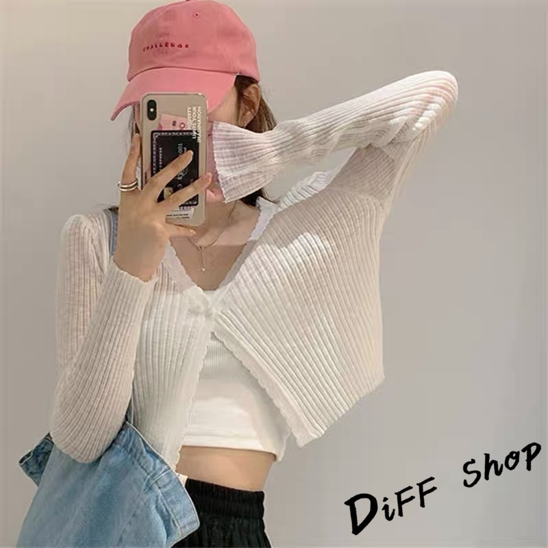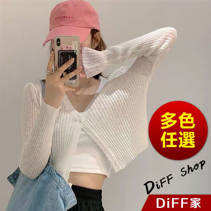 【DIFF】韓版薄款冰絲寬鬆針織外套 短版上衣 上衣 女裝 衣服 外套 薄外套 罩衫 防曬外套 長袖上衣【J198】【J198】白色|【J198】藍色|【J198】粉色|【J198】黃色|【J198】紫色|【J198】綠色|【J198】黑色|【J198】杏色DiFF shop