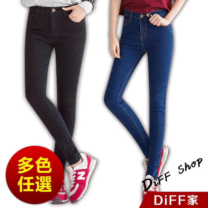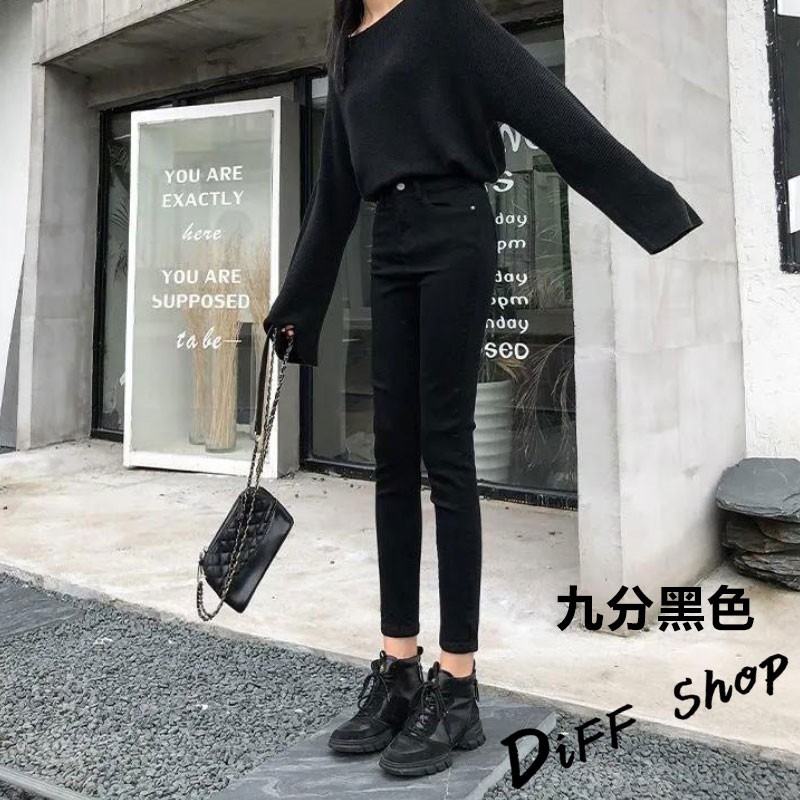 【DIFF】韓版顯瘦彈性修身牛仔褲 加厚緊身顯瘦 九分褲 緊身褲 牛仔褲 長褲 小腳褲 褲子 黑褲【P48】