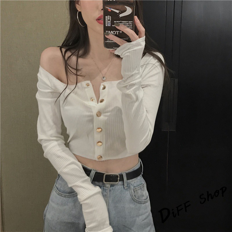【DIFF】韓版性感露肩彈性修身顯瘦一字領長袖上衣 長袖t恤 女裝 衣服 寬鬆上衣 顯瘦上衣 素T 素色【W135】【W135】黑色|【W135】白色|【W135】藍色T-shirtsDiFF shop