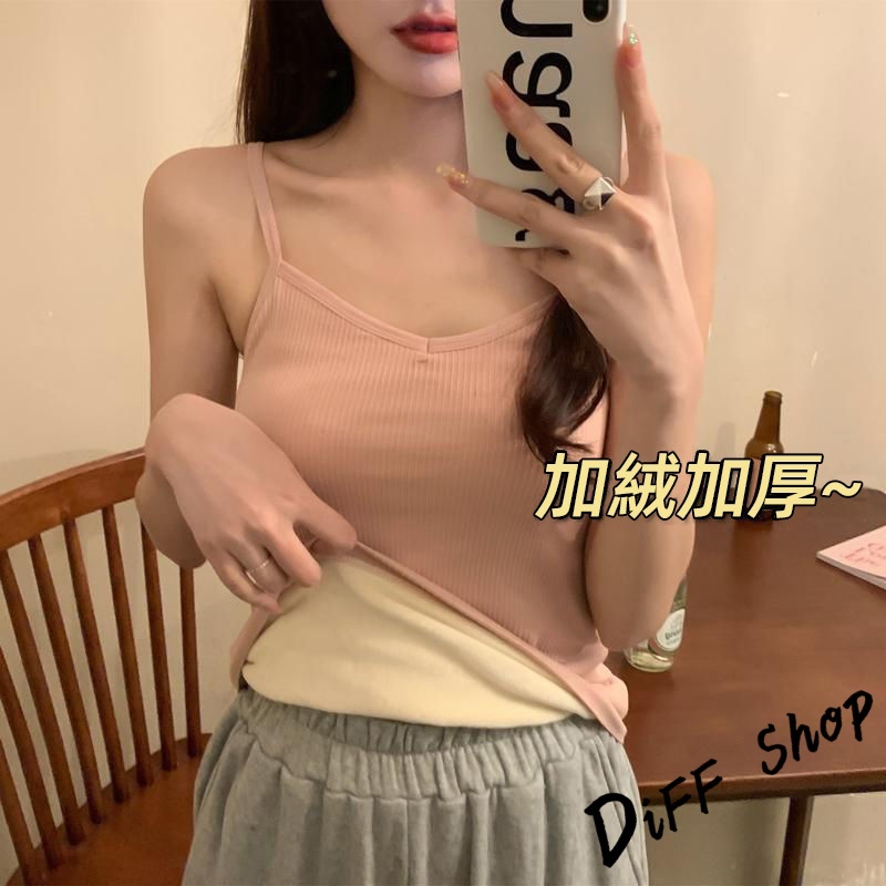 【DIFF】韓版內刷毛保暖內搭吊帶背心 針織上衣 上衣 衣服 保暖上衣 冬天女裝 發熱衣【V112】【V112】粉色|【V112】黑色|【V112】白色Tanks & CamisolesDiFF shop