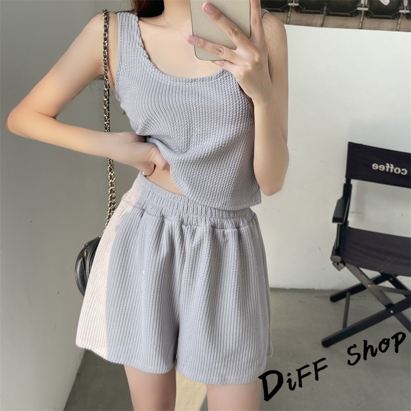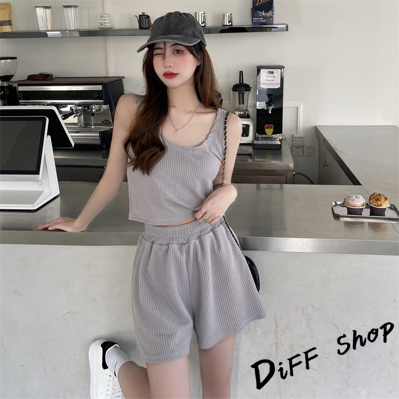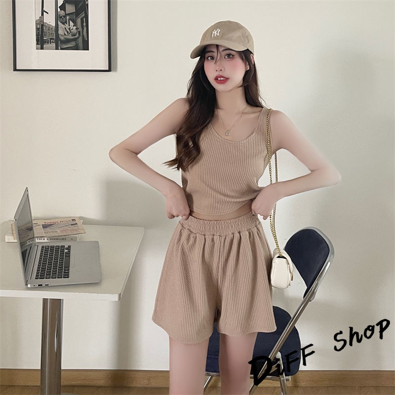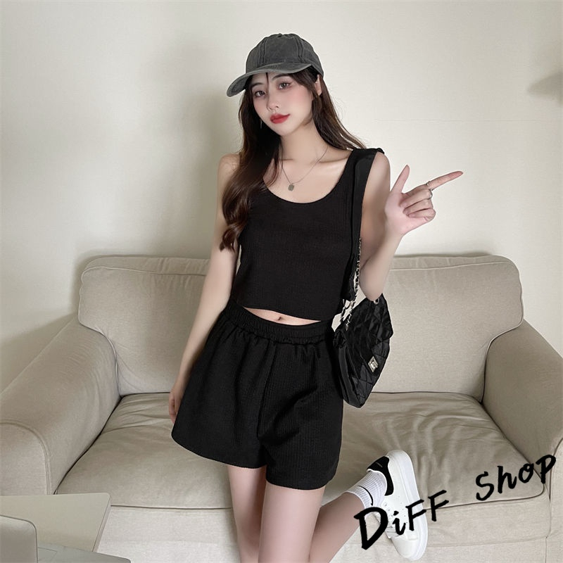 【DIFF】韓版休閒運動背心+運動短褲 運動套裝 上衣 小可愛 女裝 衣服 短版上衣 褲子【S217】