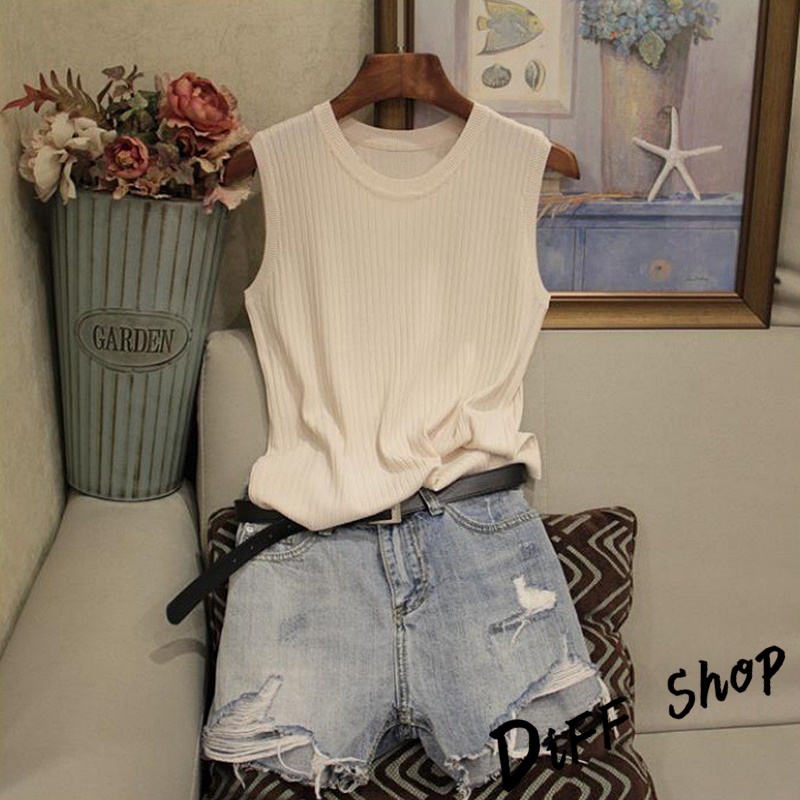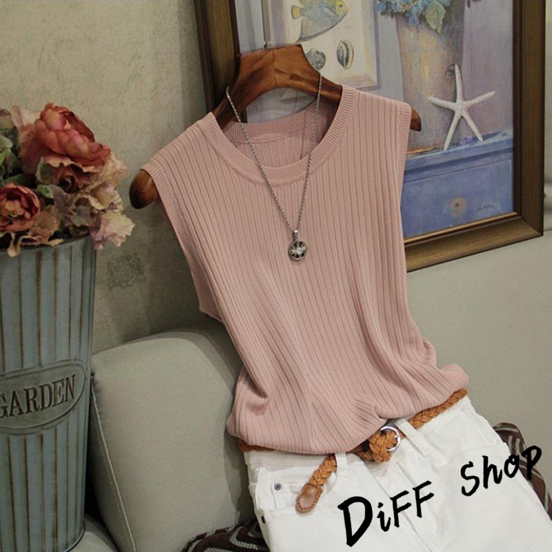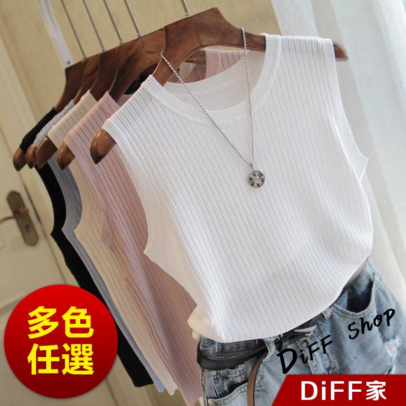 【DIFF】韓版冰絲薄款無袖針織上衣 短袖上衣 短袖t恤 女裝 衣服 寬鬆上衣 背心 無袖上衣【V323】【V323】黑色|【V323】淺藍色|【V323】白色|【V323】杏色|【V323】粉紅色Tanks & CamisolesDiFF shop
