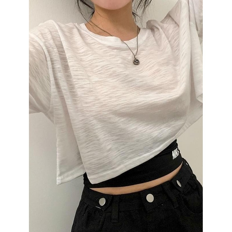 Codibook|韓國 BEIDELLI 透膚短版長袖上衣[預購]短袖上衣 女裝黑,無|象牙白,無|灰色,無|藍色,無|天空藍,無|萊姆,無T-shirtsCodibook 韓國女裝購物平台