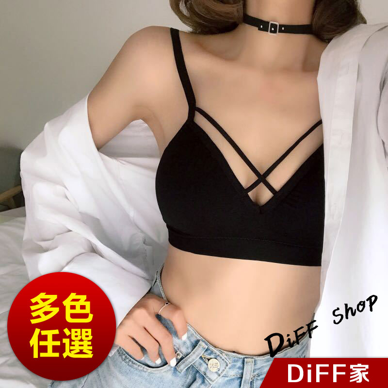 【DIFF】韓版美背吊帶小心機交叉背心 帶胸墊免穿內衣 上衣 小可愛 女裝 背心女 衣服 短版上衣 短板上衣【V137】【V137】白色|【V137】灰色|【V137】粉色|【V137】黑色Tanks & CamisolesDiFF shop
