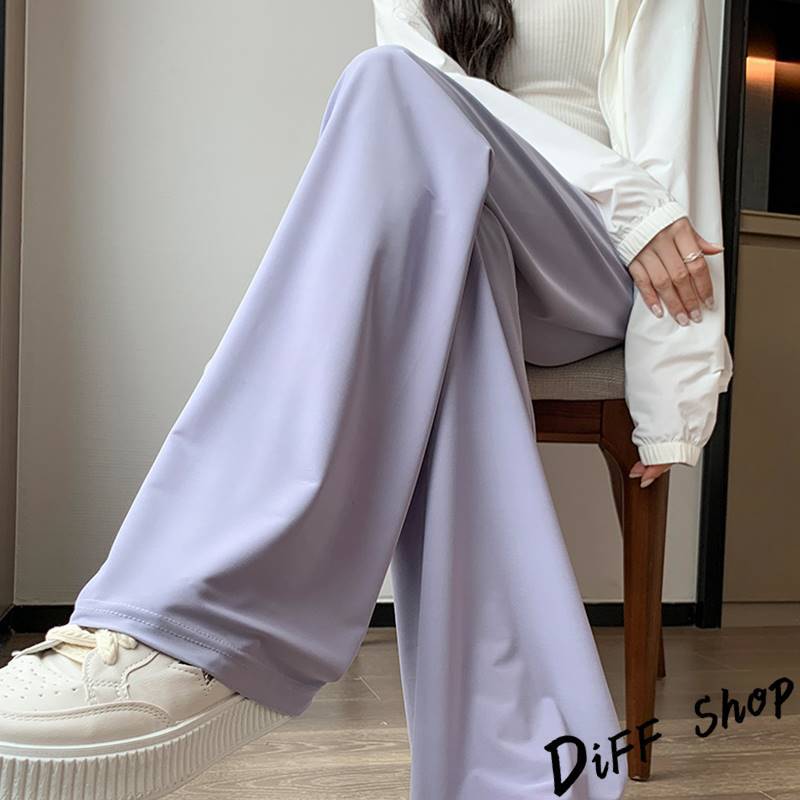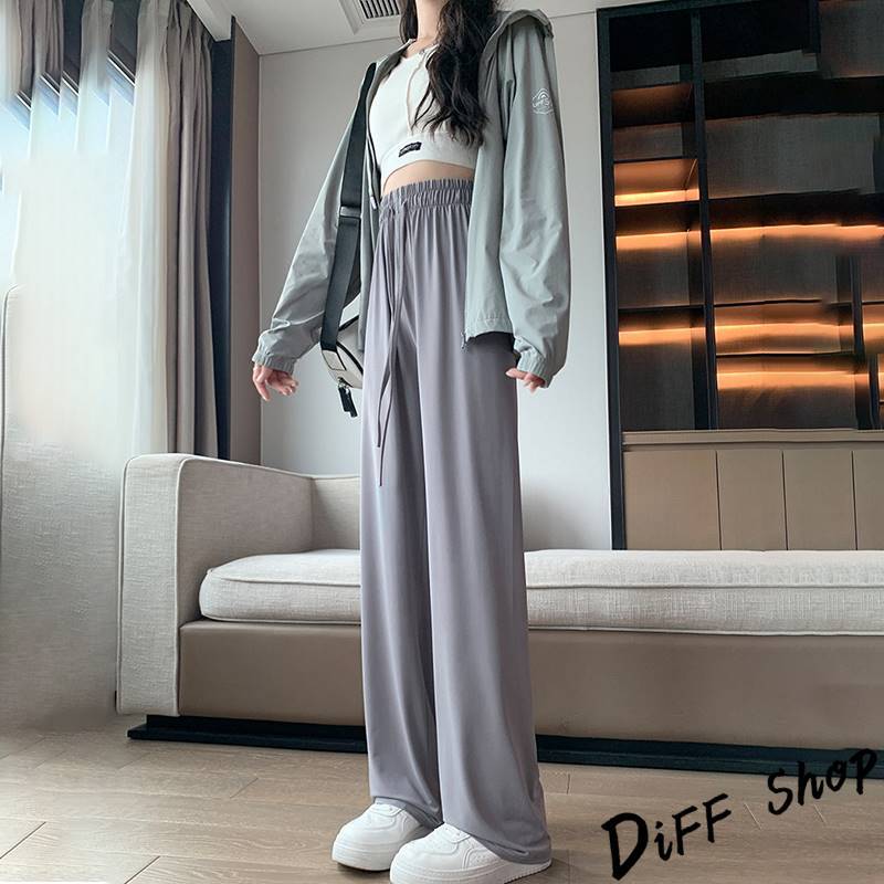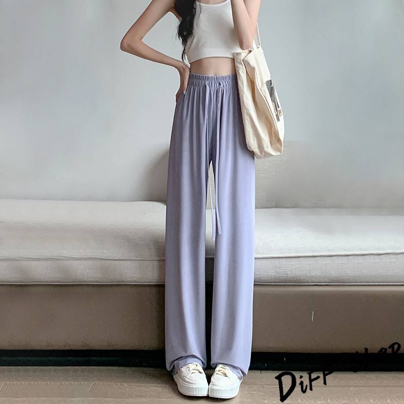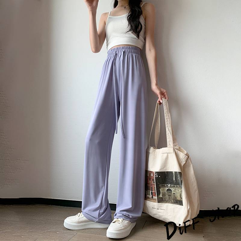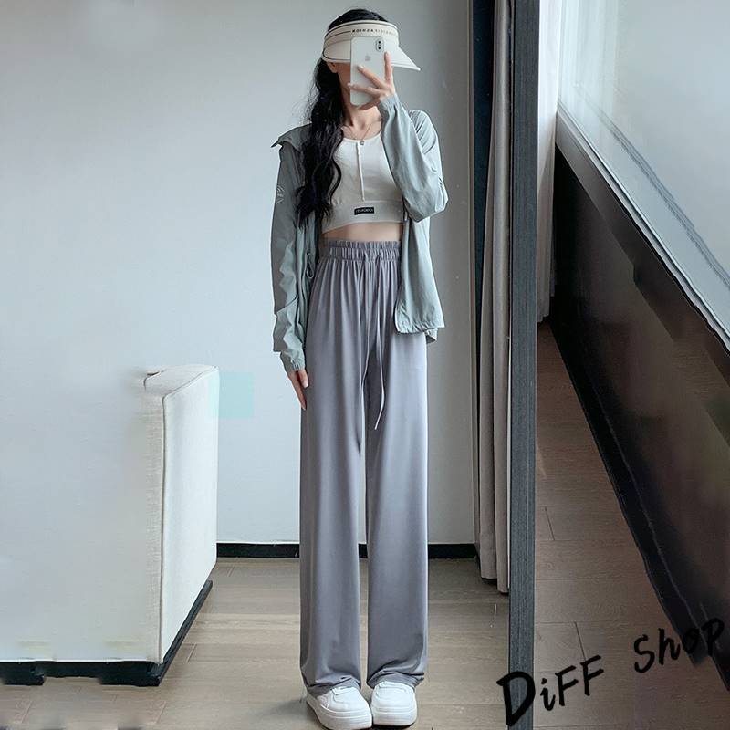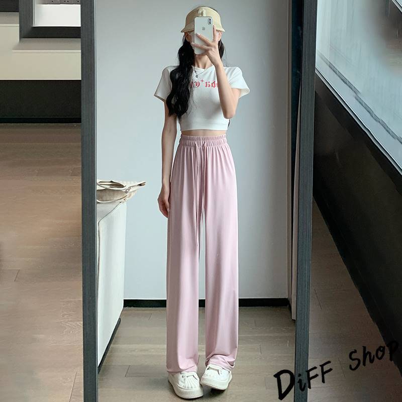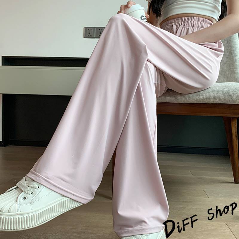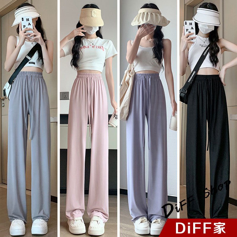 【DIFF】韓版高腰顯瘦直筒透氣冰絲寬褲 防曬褲 褲子 長褲 休閒褲 女裝 高腰褲 拖地褲 直筒褲 黑褲【P333】【P333】黑色|【P333】灰綠色|【P333】粉色|【P333】淺紫色PantsDiFF shop