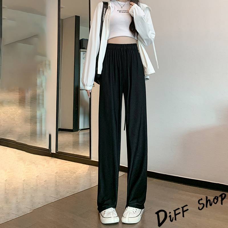 【DIFF】韓版高腰顯瘦直筒透氣冰絲寬褲 防曬褲 褲子 長褲 休閒褲 女裝 高腰褲 拖地褲 直筒褲 黑褲【P333】