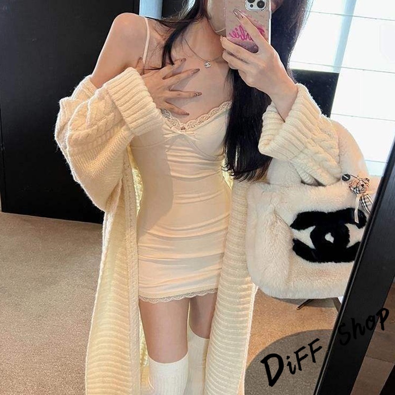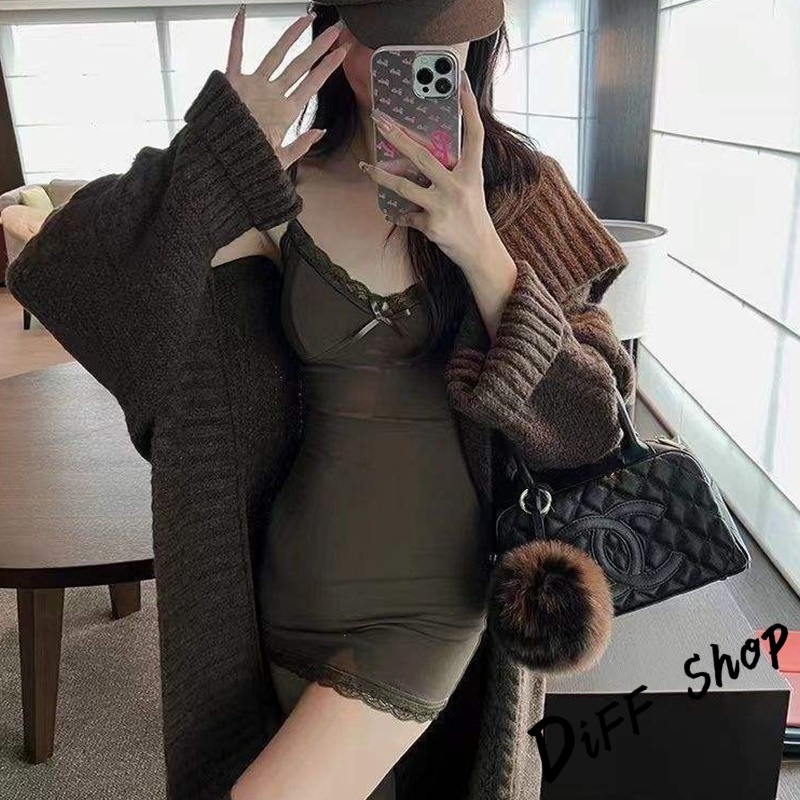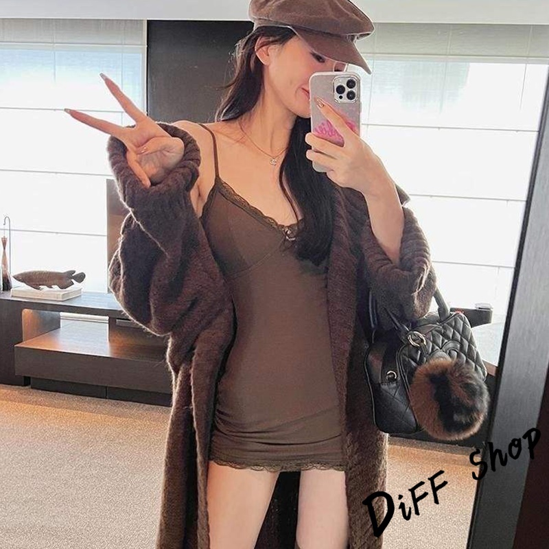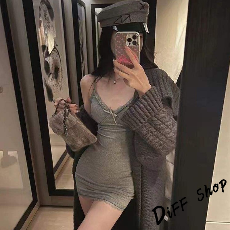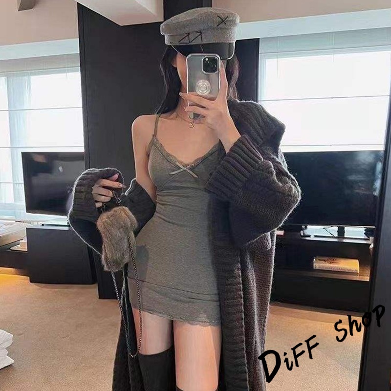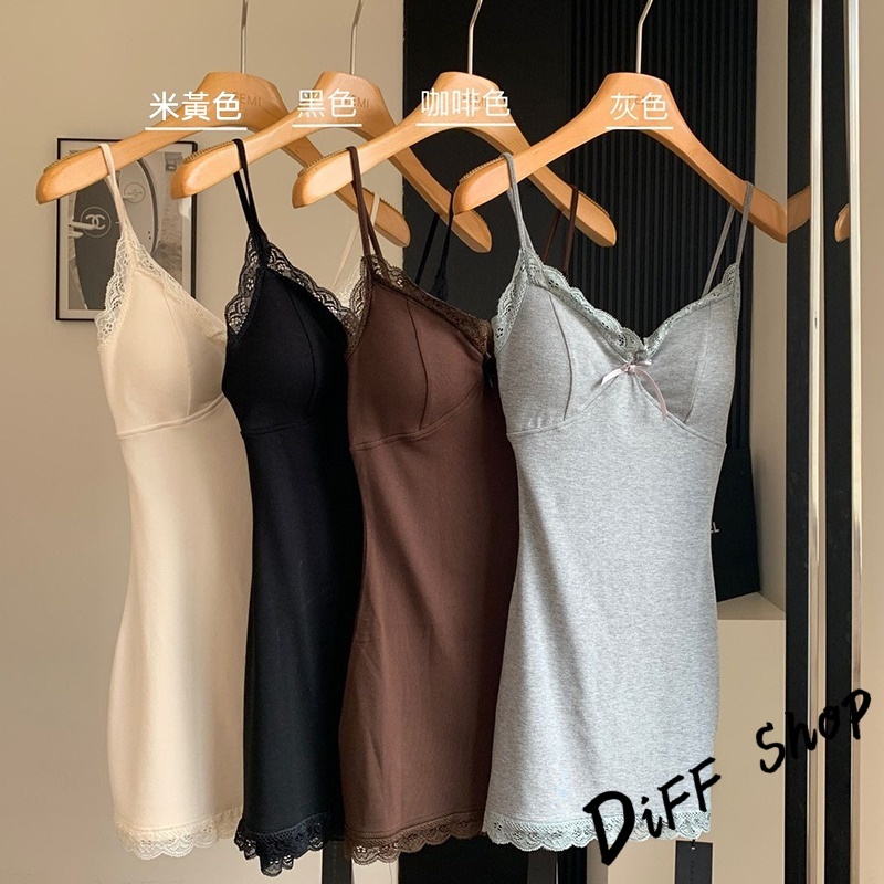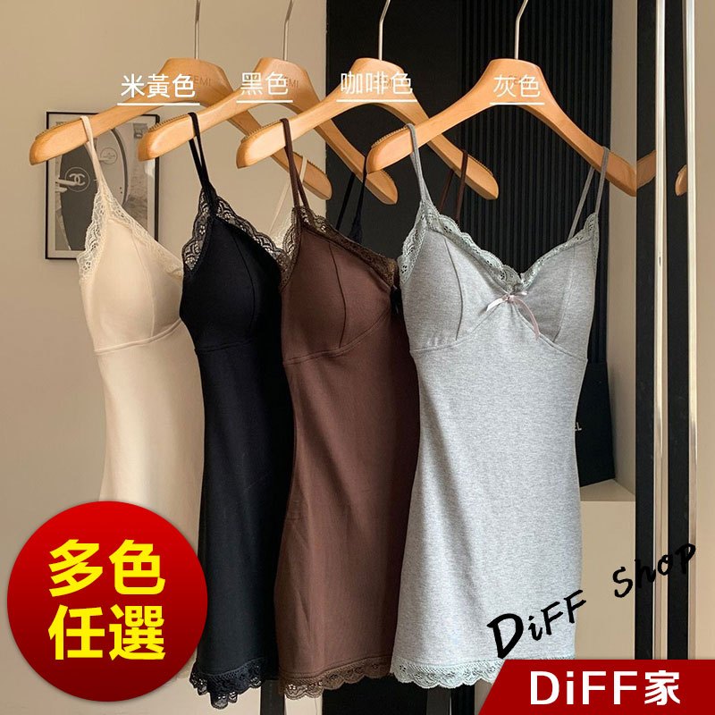 【DIFF】韓版蕾絲內搭吊帶裙洋裝 帶胸墊免穿內衣 背心 小可愛 女裝 衣服 夏天女裝 連身裙 套裝【V358】【V358】灰色|【V358】黑色|【V358】咖啡|【V358】杏色DiFF shop