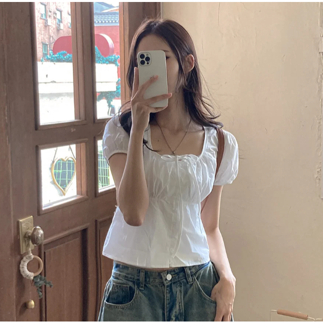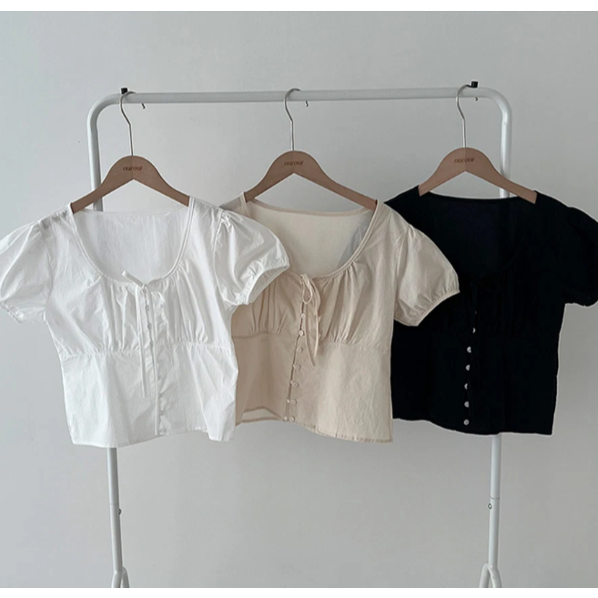 Codibook|韓國 gifteabox 優雅泡泡袖排扣抓褶釦飾上衣[預購]雪紡襯衫 T恤 女裝象牙白,free|米褐色,free|黑色,freeShirts & BlousesCodibook 韓國女裝購物平台