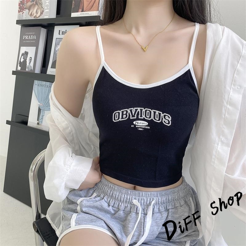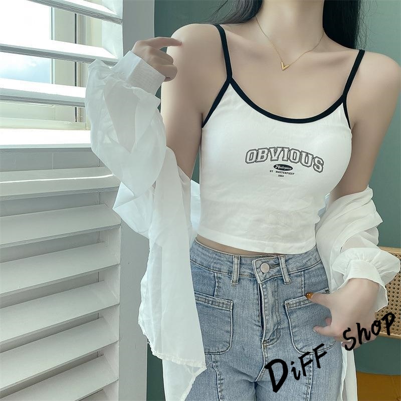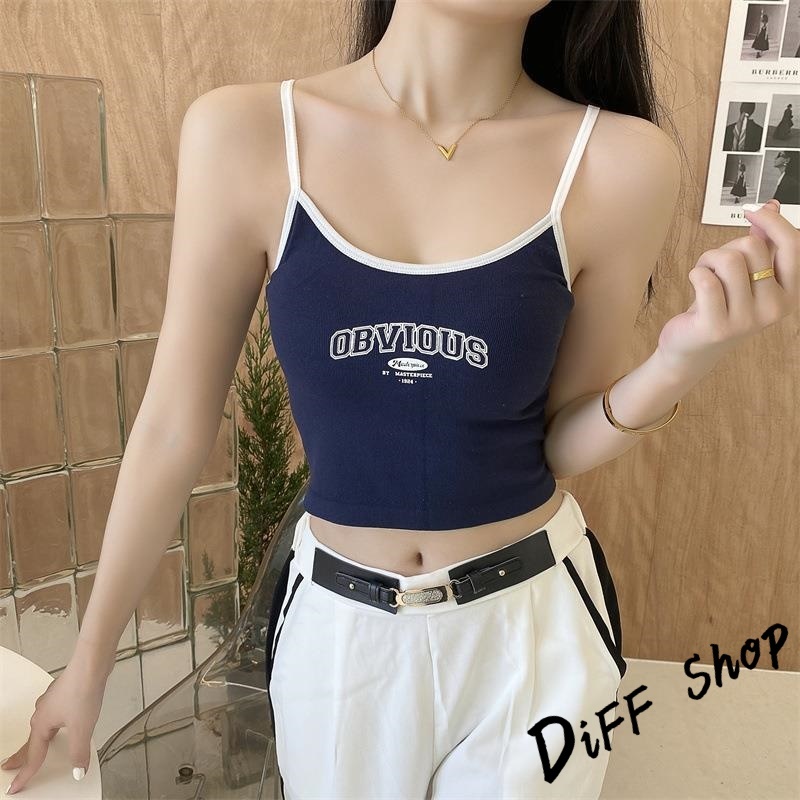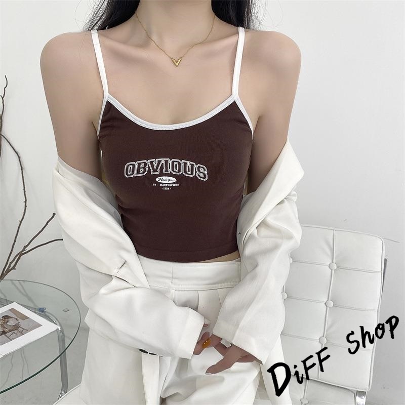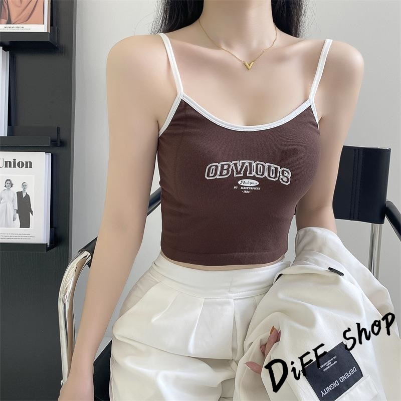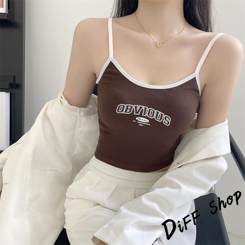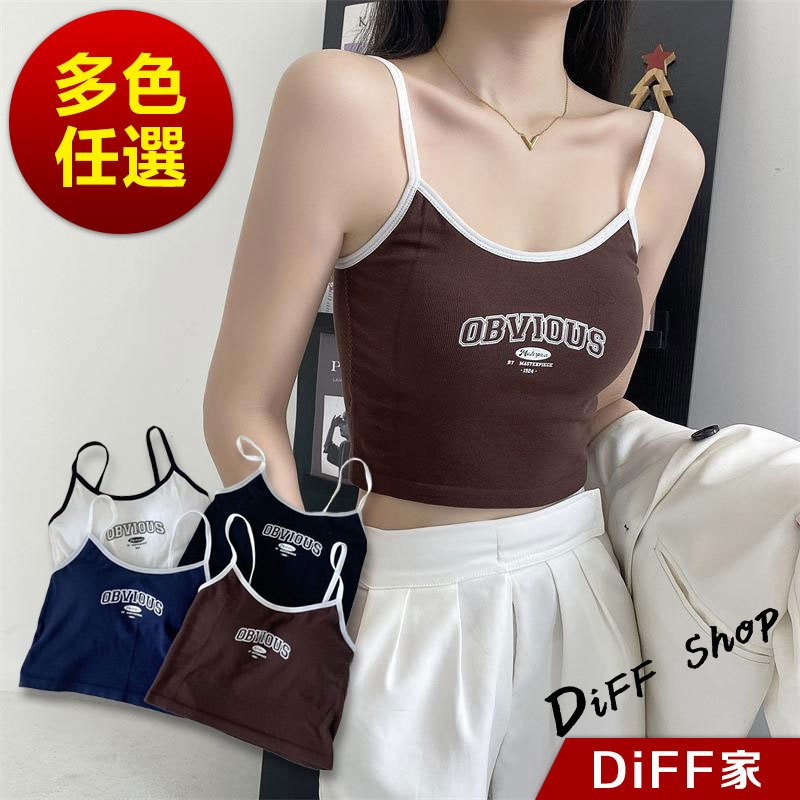 【DIFF】韓版字母吊帶背心 帶胸墊免穿內衣 小可愛 女裝 衣服 短版上衣 小背心 夏天女裝 運動背心 內搭【V397】【V397】藍色|【V397】黑色|【V397】白色|【V397】咖啡色Tanks & CamisolesDiFF shop