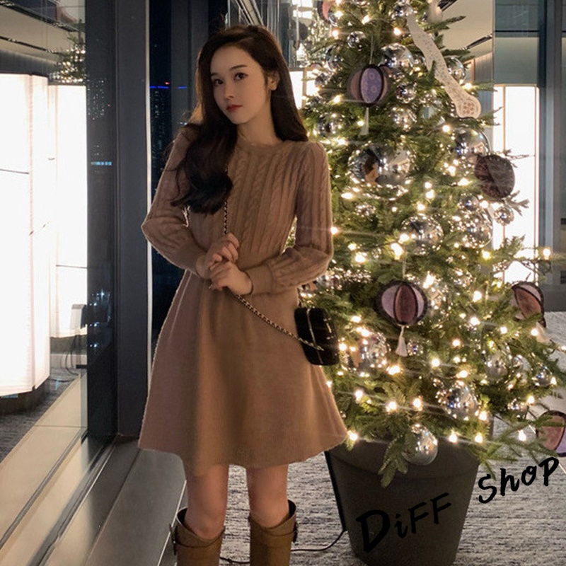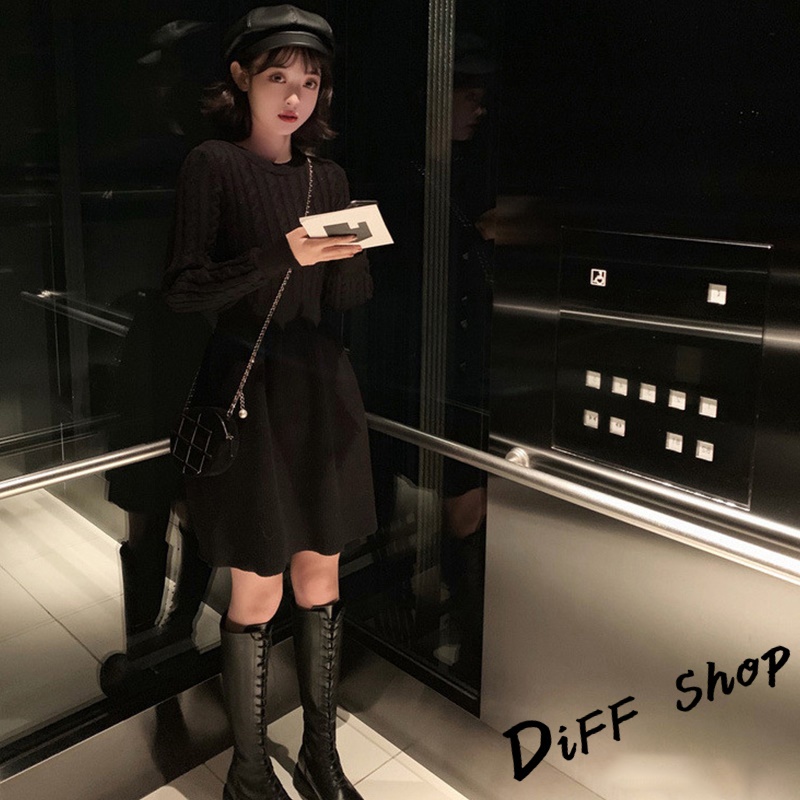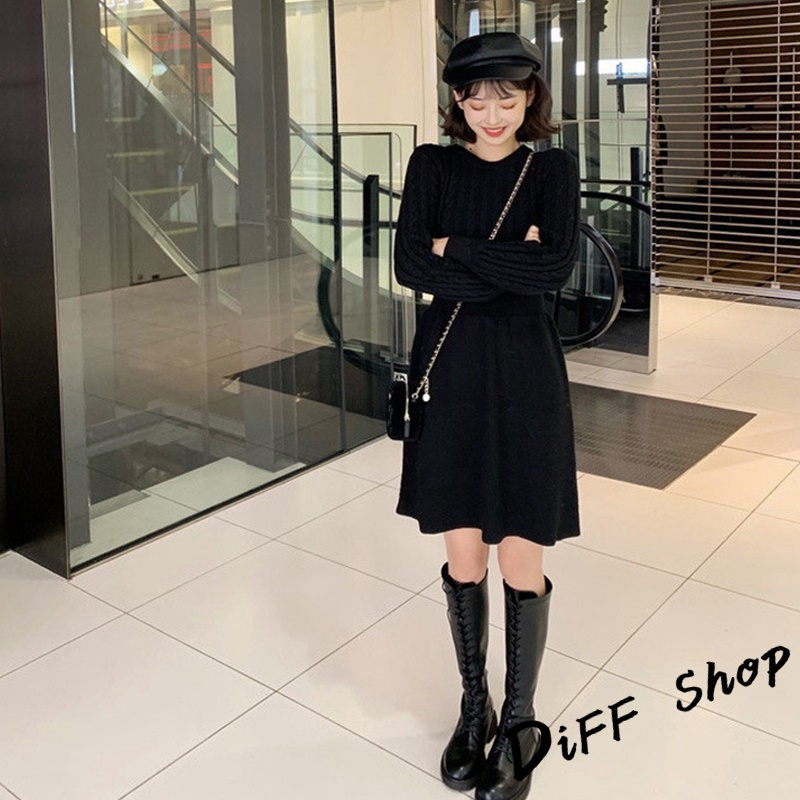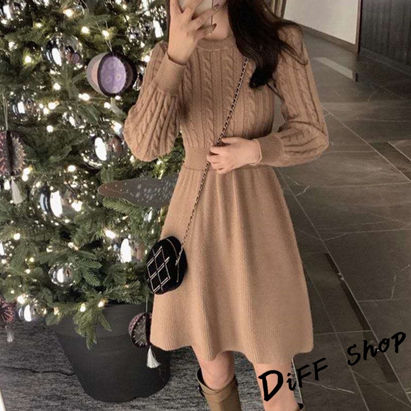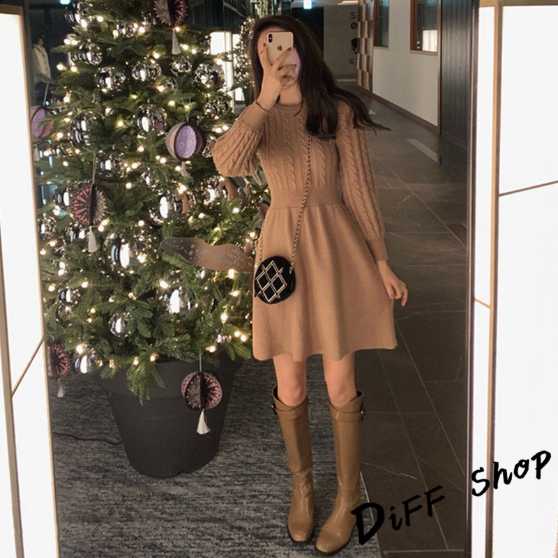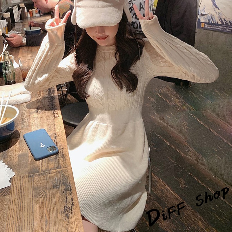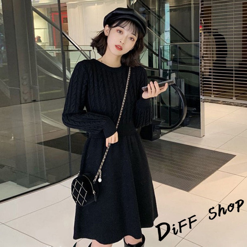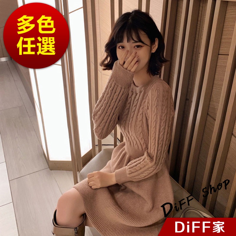 【DIFF】韓版收腰麻花針織洋裝 連衣裙 套裝 毛衣 長袖上衣 女裝 衣服 寬鬆上衣 顯瘦上衣 冬裝【S156】【S156】卡其|【S156】米白|【S156】黑色DiFF shop