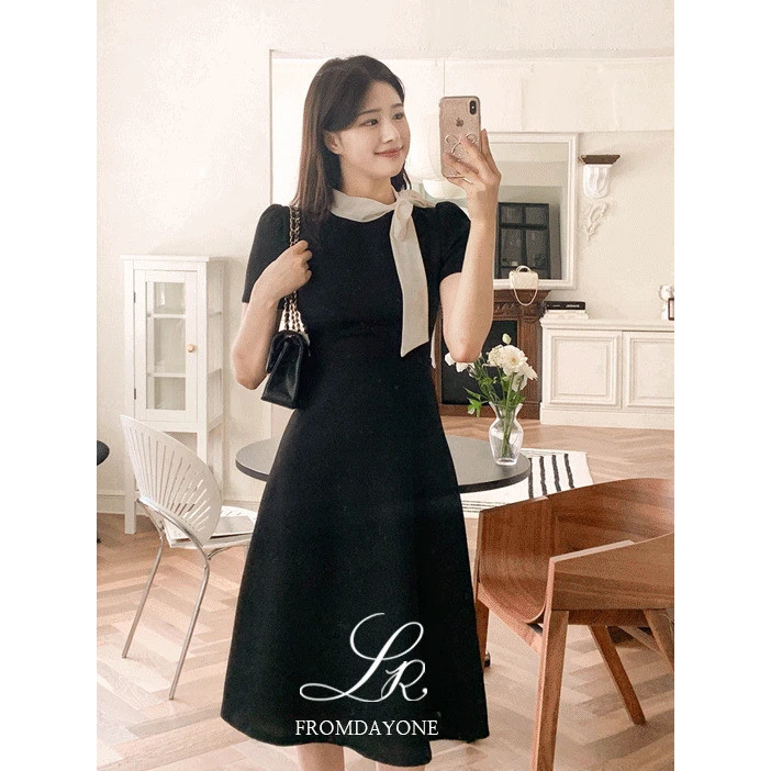 Codibook|韓國 FROMDAYONE 典雅繫結軟呢長版洋裝[預購]及膝洋裝 女裝黑色,S|黑色,MCodibook 韓國女裝購物平台