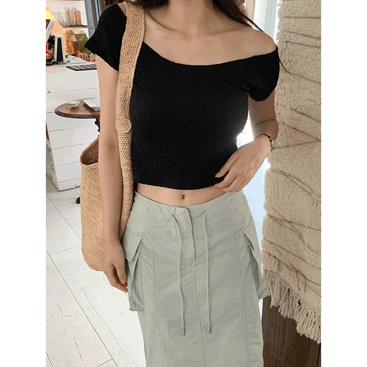 Codibook|韓國 moaround 抓皺肩部露肩短版T恤[預購]短袖上衣 T恤 女裝象牙白,FREE|薄荷色,FREE|黑色,FREET-shirtsCodibook 韓國女裝購物平台