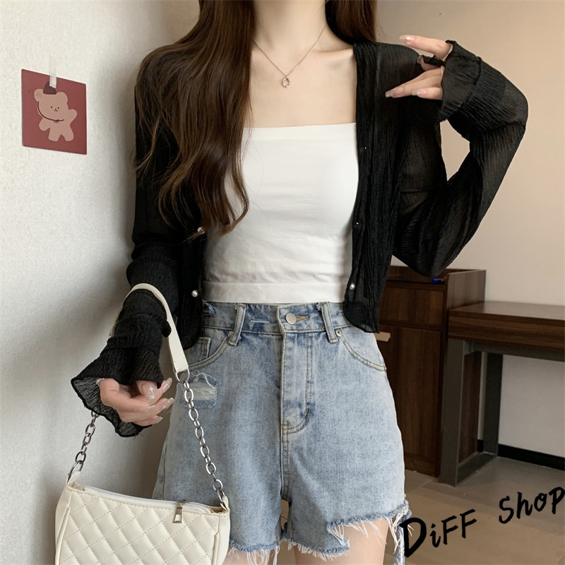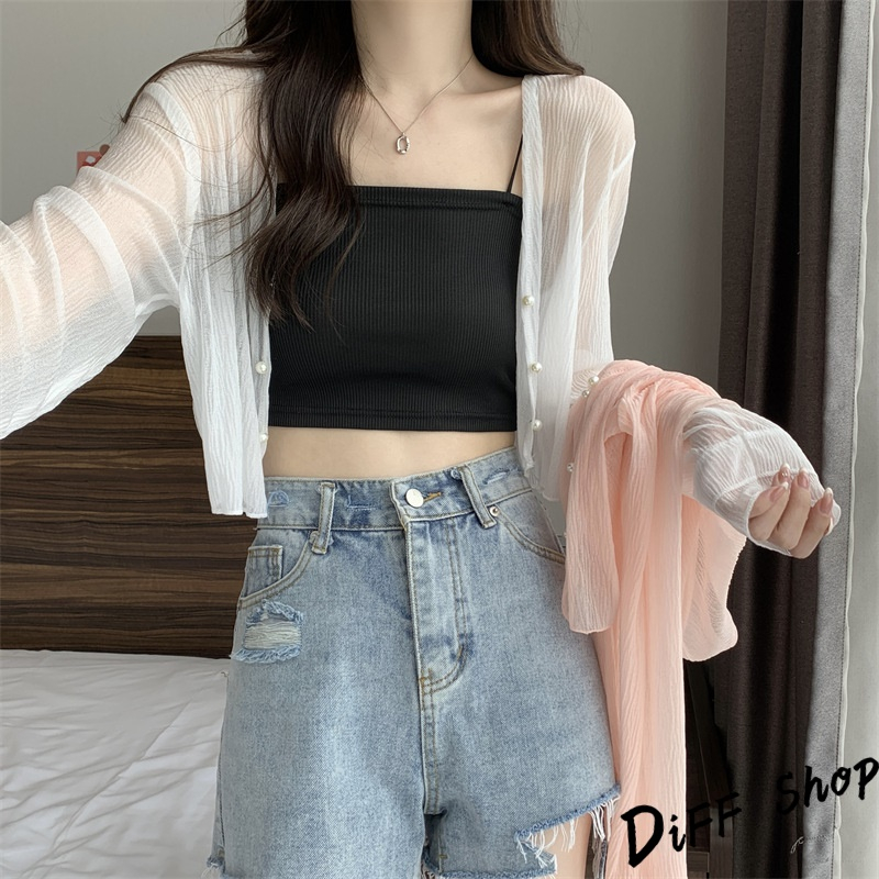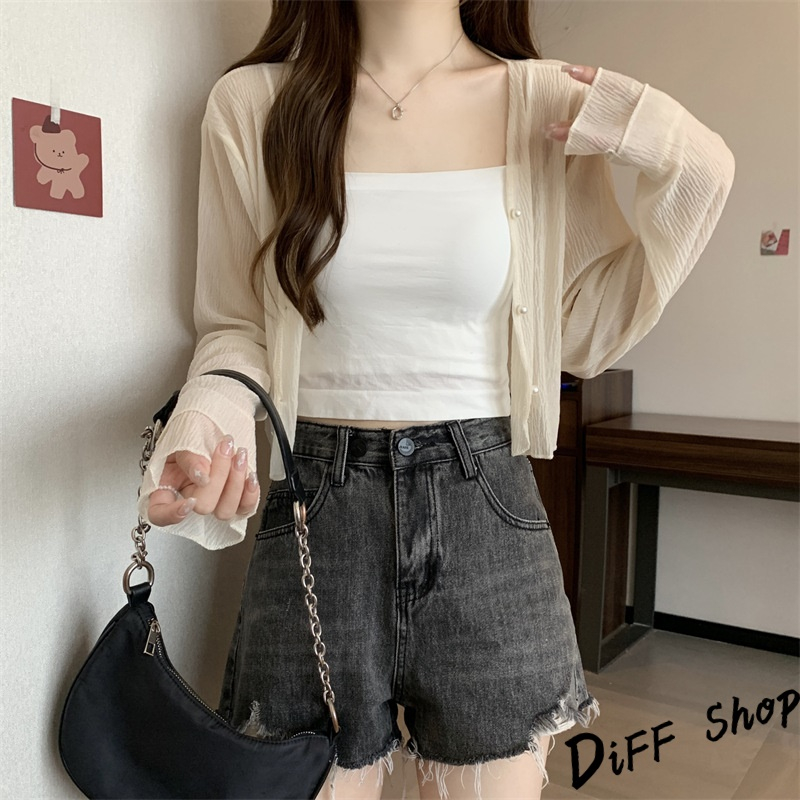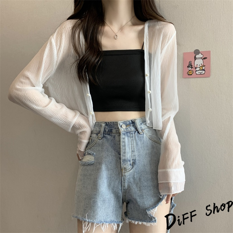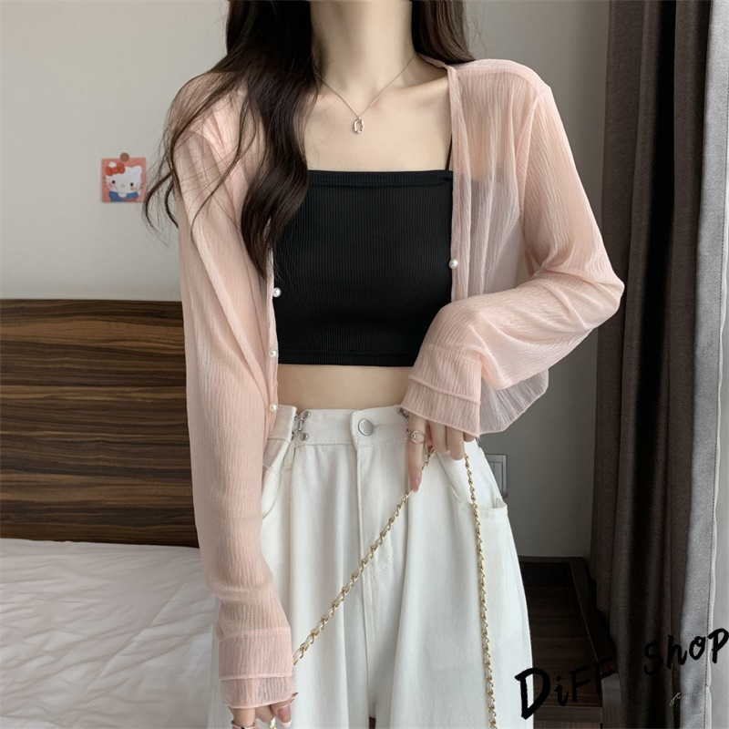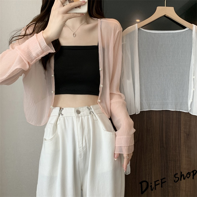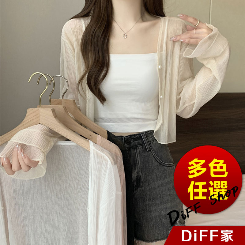 【DIFF】韓版薄款冰絲雪紡罩衫 上衣 女裝 衣服 外套 長袖上衣 薄外套 罩衫 防曬外套【J277】【J277】杏色|【J277】白色|【J277】黑色|【J277】粉色JacketsDiFF shop