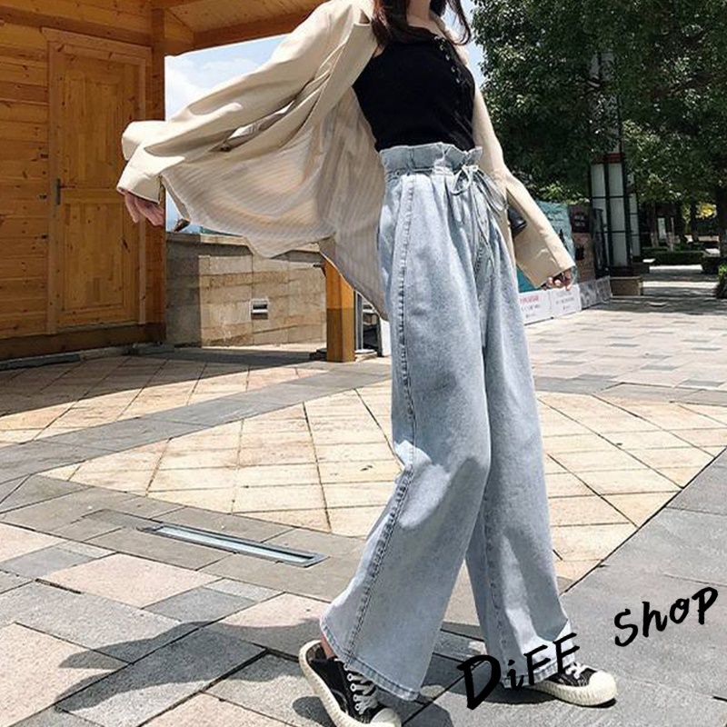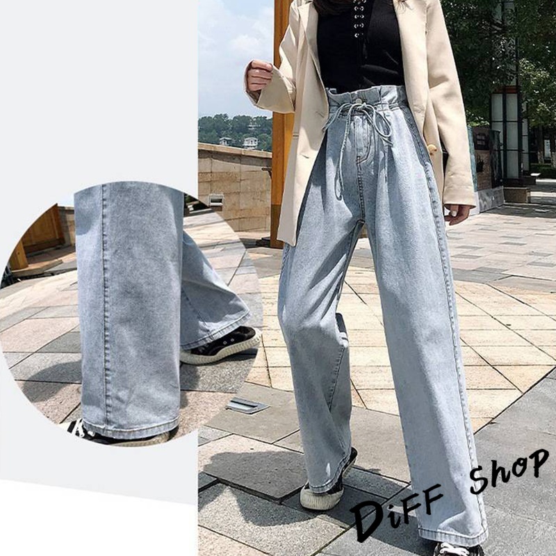 【DIFF】韓版高腰寬鬆花苞直筒腰牛仔寬褲 褲子 長褲 休閒褲 女裝 高腰褲 牛仔褲 拖地褲【P110】【P110】S號|【P110】M號|【P110】L號|【P110】XL號DiFF shop