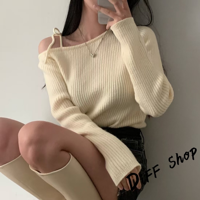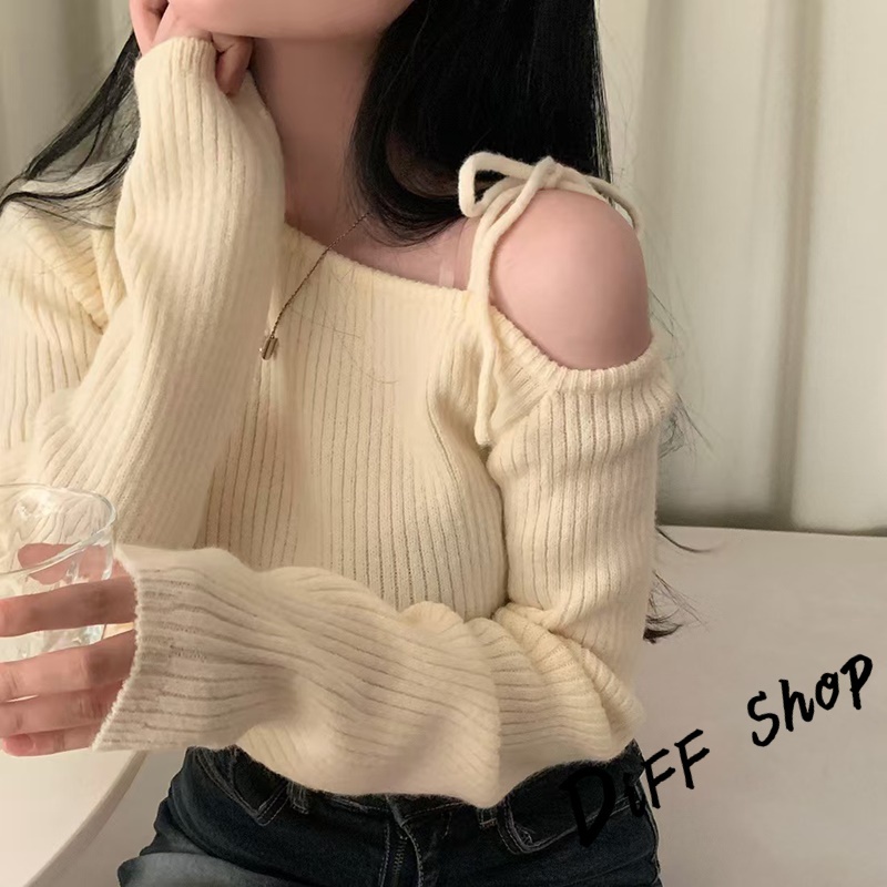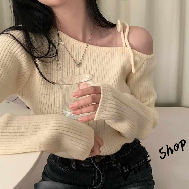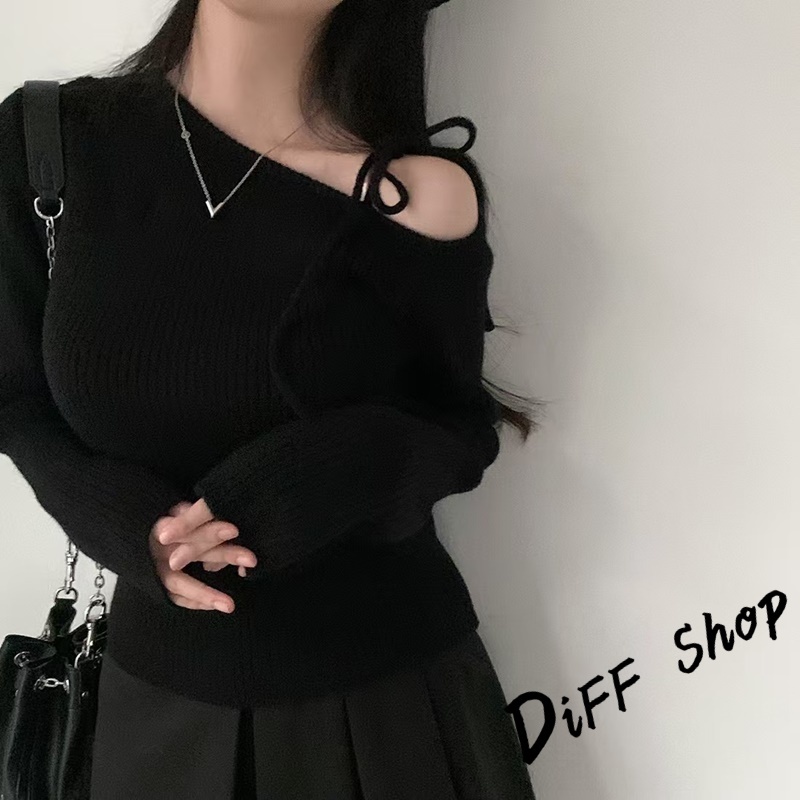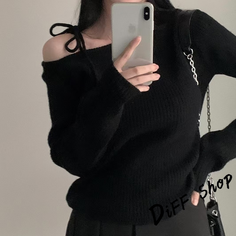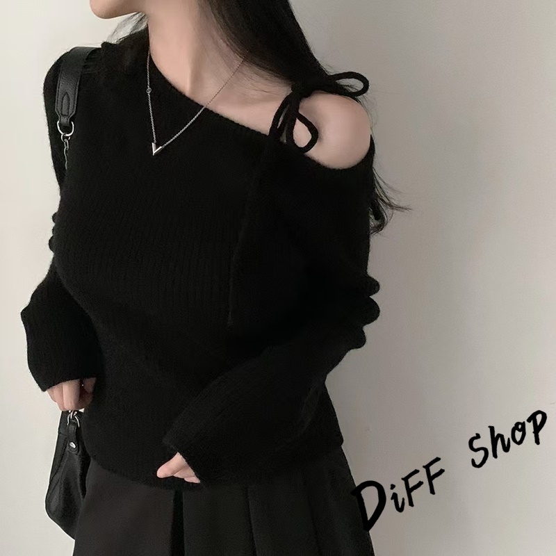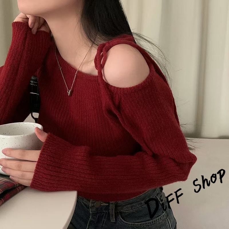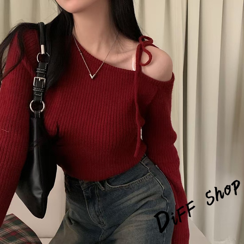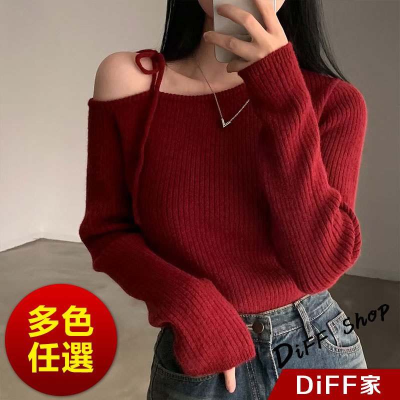 【DIFF】韓版氣質斜肩露肩顯瘦針織上衣 毛衣 長袖上衣 女裝 衣服 發熱衣 保暖上衣 冬裝 過年女裝【W521】【W521】黑色|【W521】杏色|【W521】酒紅DiFF shop